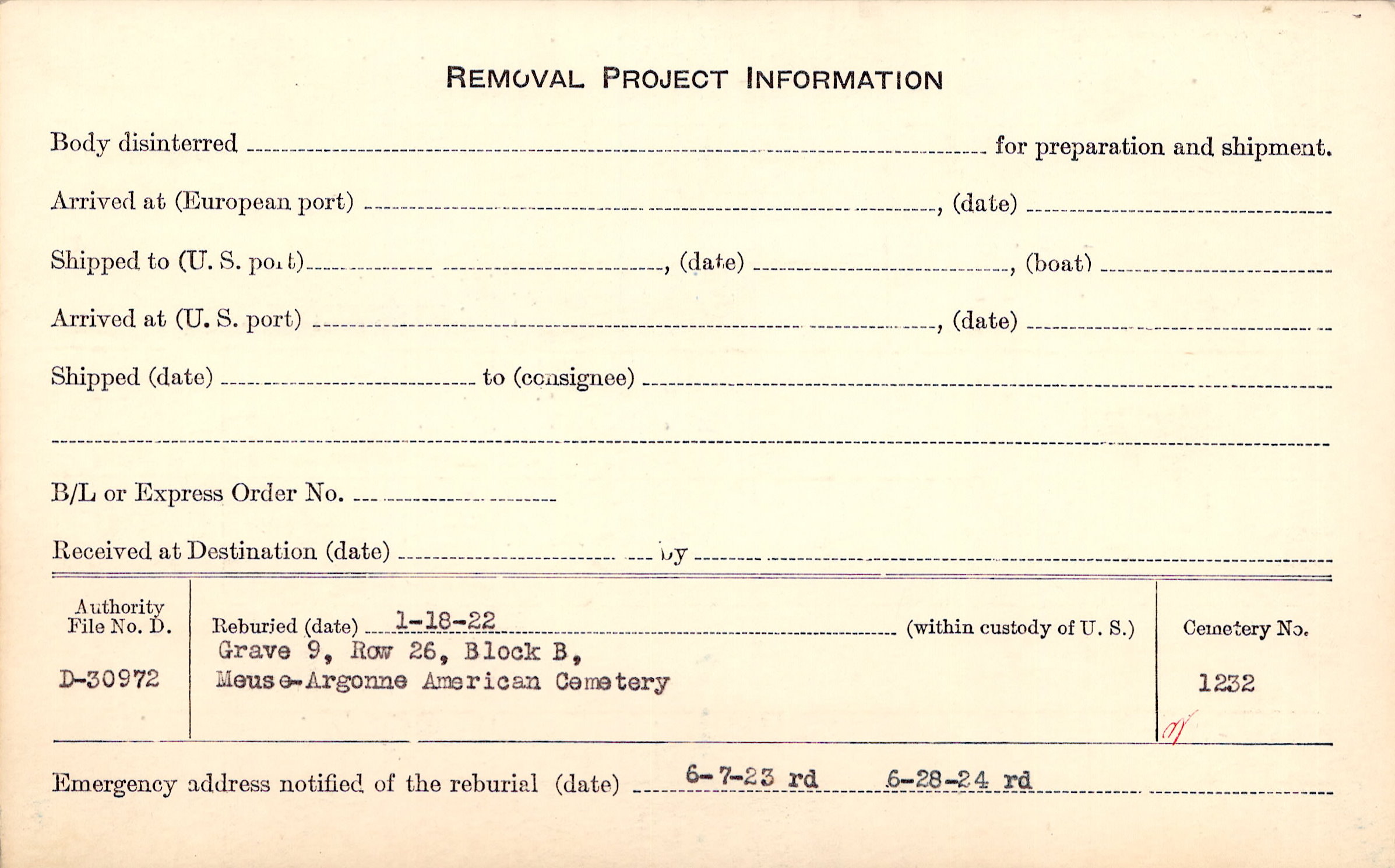 | Permanent Burial in Foreign Cemetery |