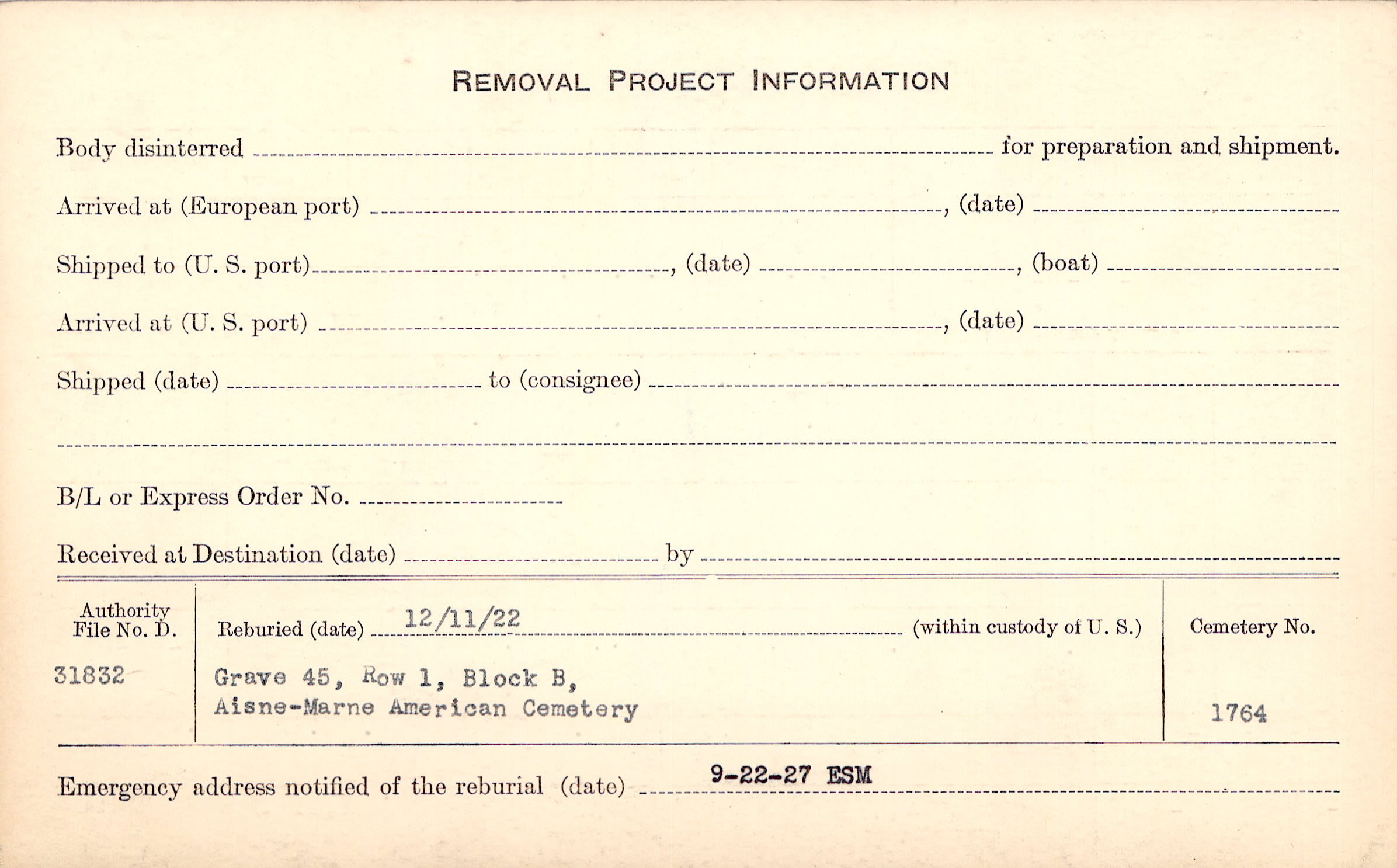 | Permanent Burial in Foreign Cemetery |