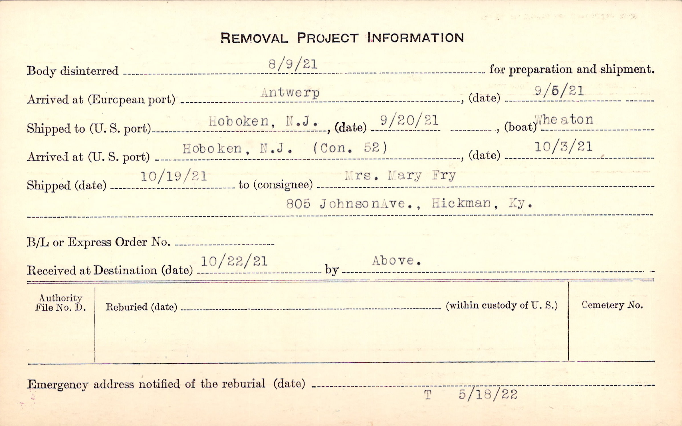 to Mrs. Mary Fry, 805 Johnson Ave., Hickman, Ky.