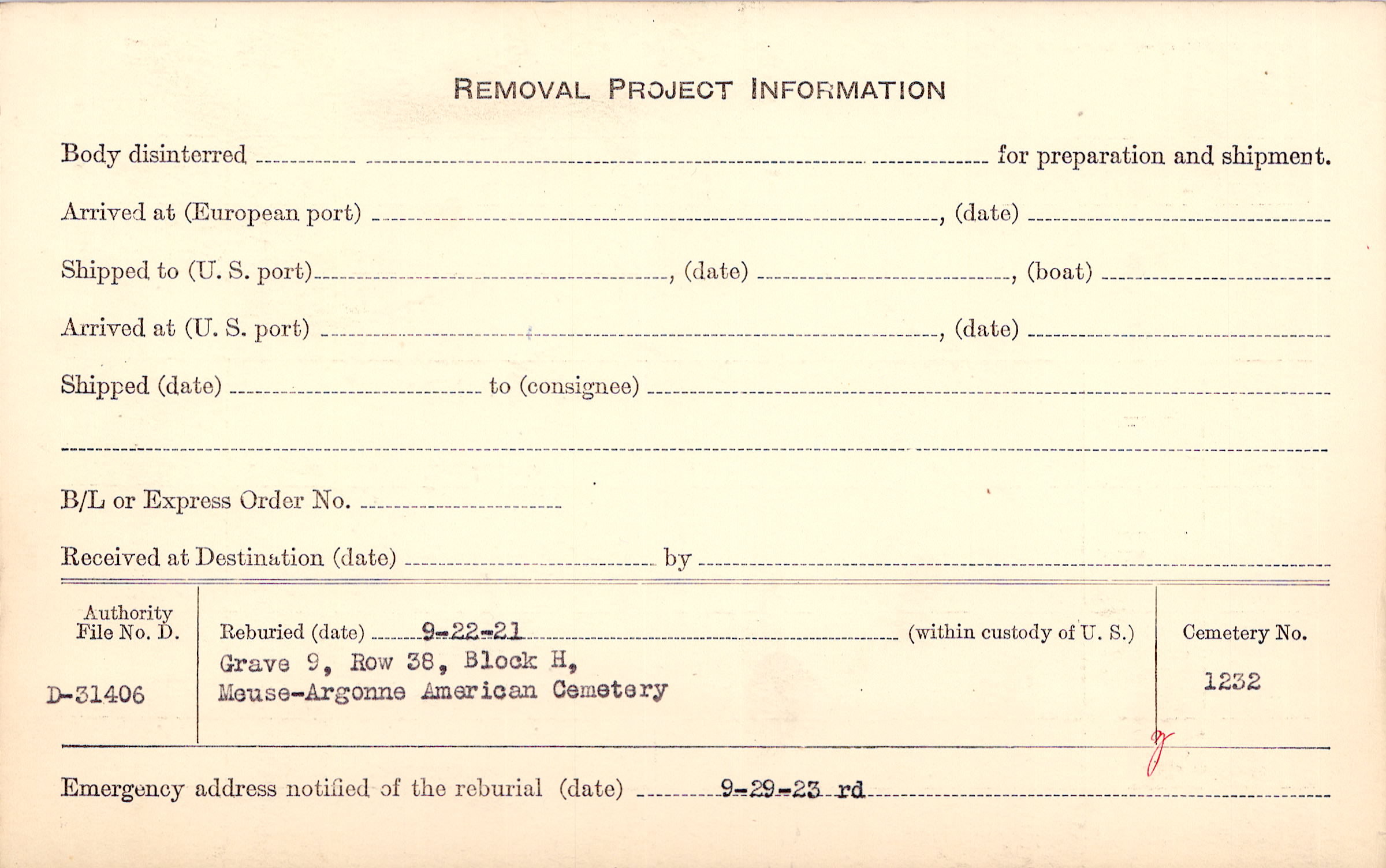 Grave 141, Section 91, Plot 3, Argonne American Cemetery, Romagne-sous-Montfaucon, Meuse