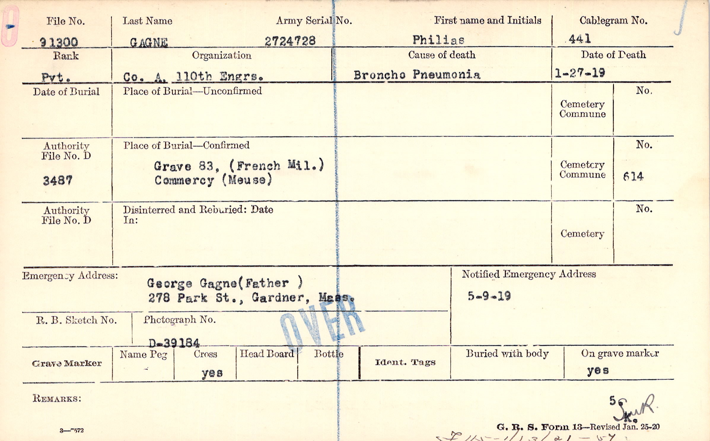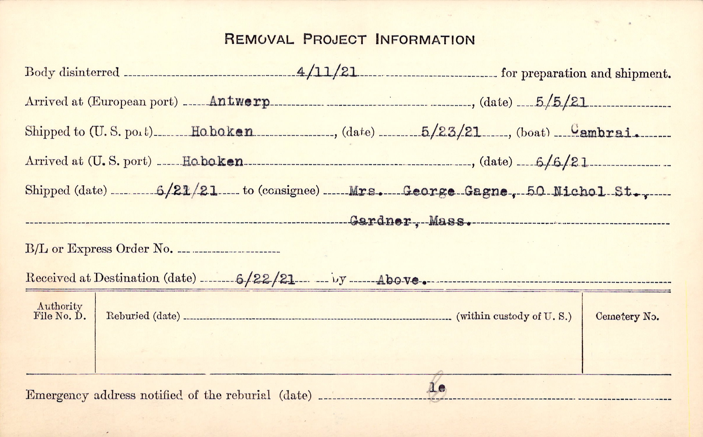 George Gagne (Father), 278 Park St., Gardner, Mass.