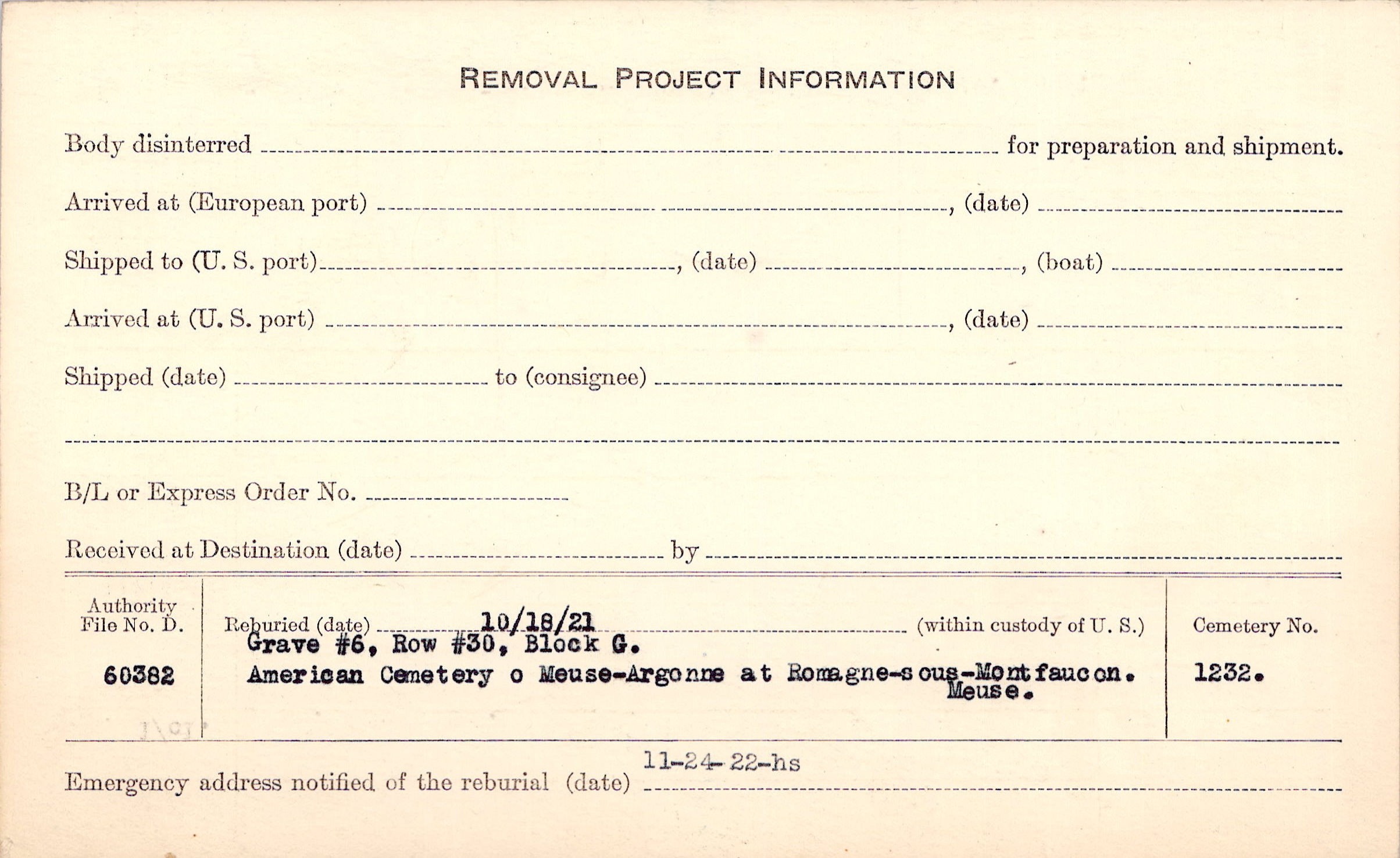 | Permanent Burial in Foreign Cemetery |