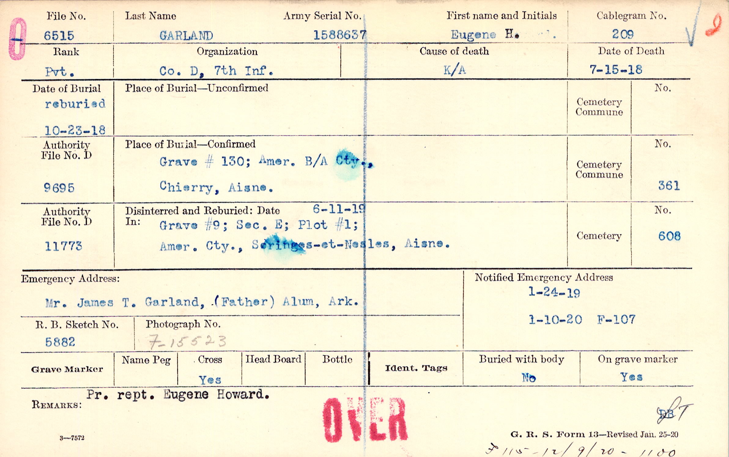 Mr. James T. Garland, (Father), Alum, Ark., Pr. rept. Eugene Howard