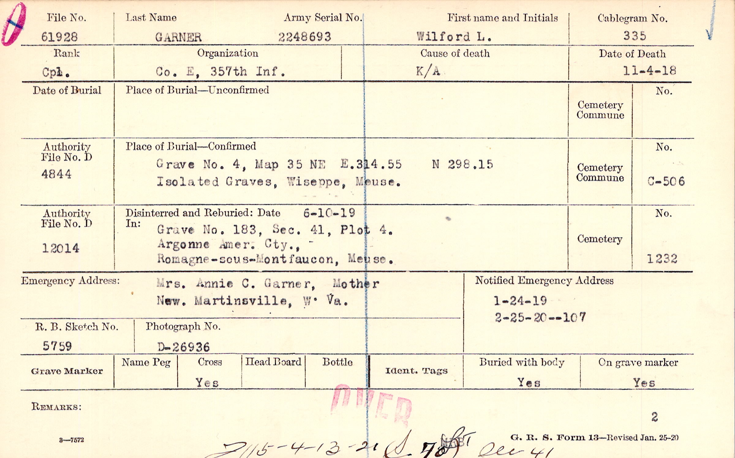 Grave 4, Map 35 NE, Isolated Graves, Wiseppe, Meuse.