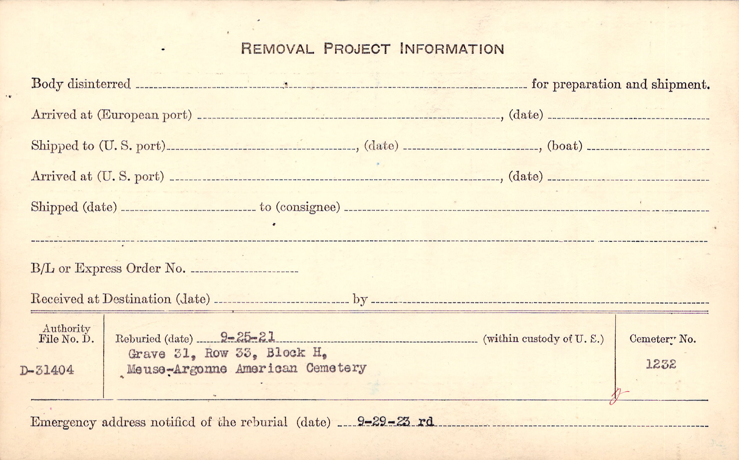 Grave 136, Section 91, Plot 3, Argonne American Cemetery, Romagne-sous-Montfaucon, Meuse