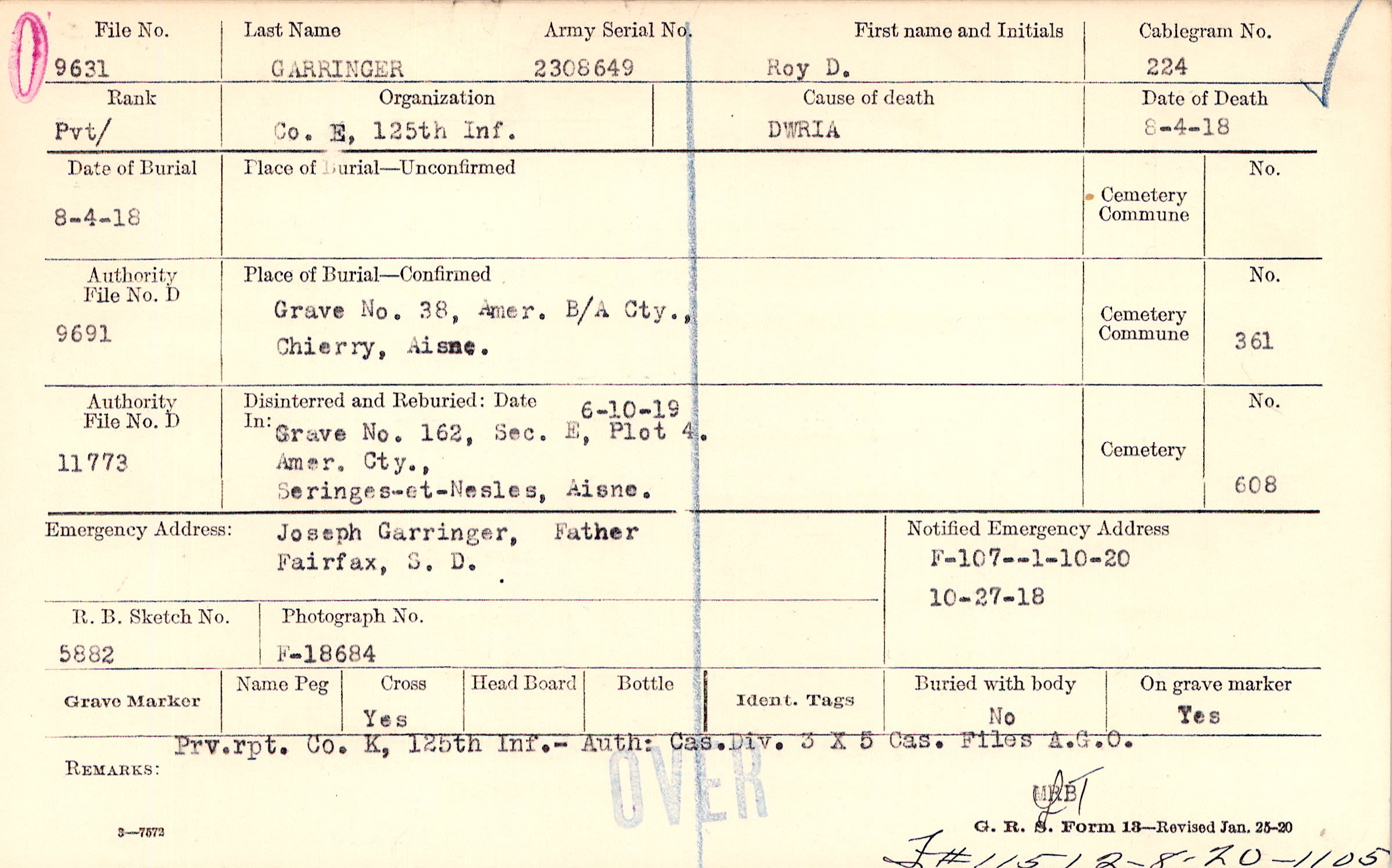 Grave 38, Amer. B/A Cty., Chierry, Aisne.