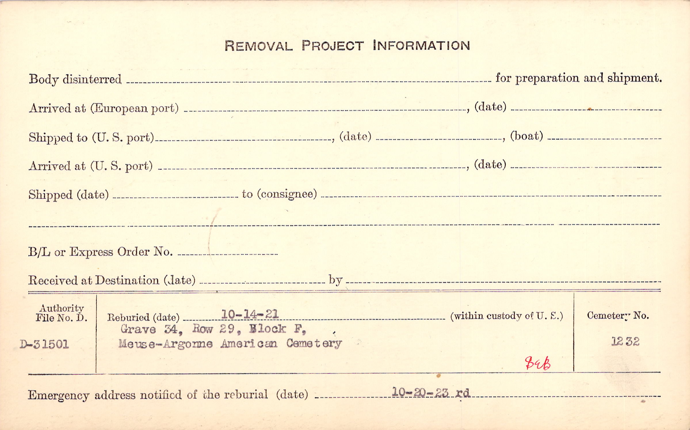 | Permanent Burial in Foreign Cemetery |