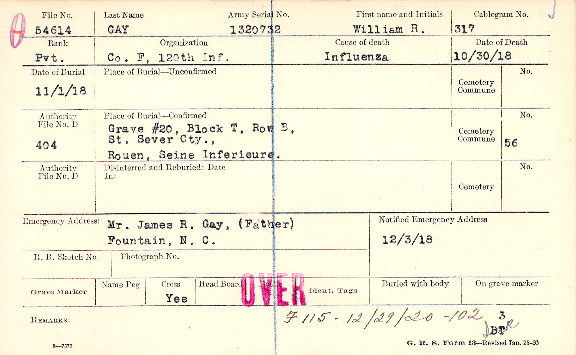 Grave #20, Block T, Row B, St. Sever Cty., Rouen, Seine Inferieure