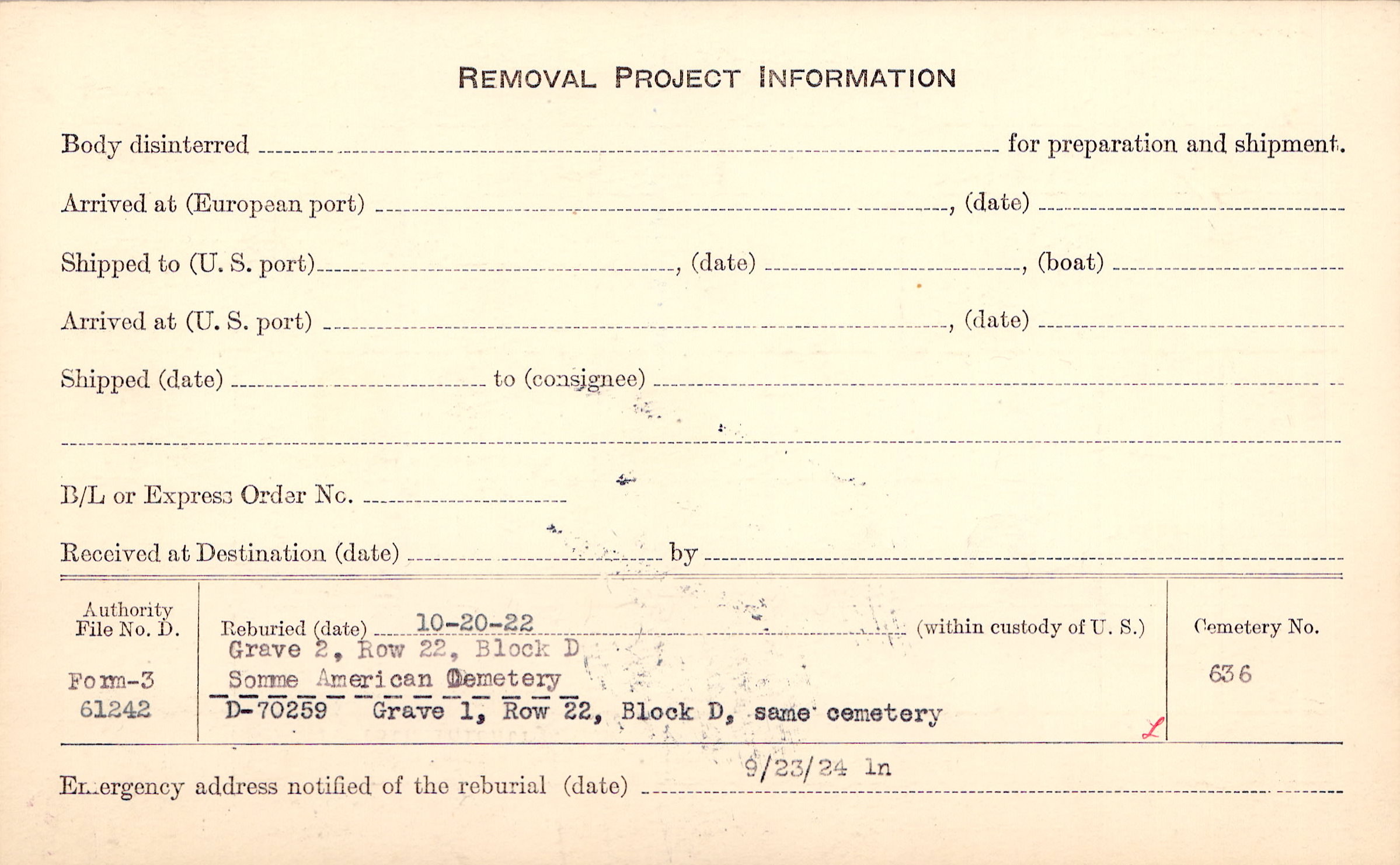 Prior Burial in Foreign Cemetery |