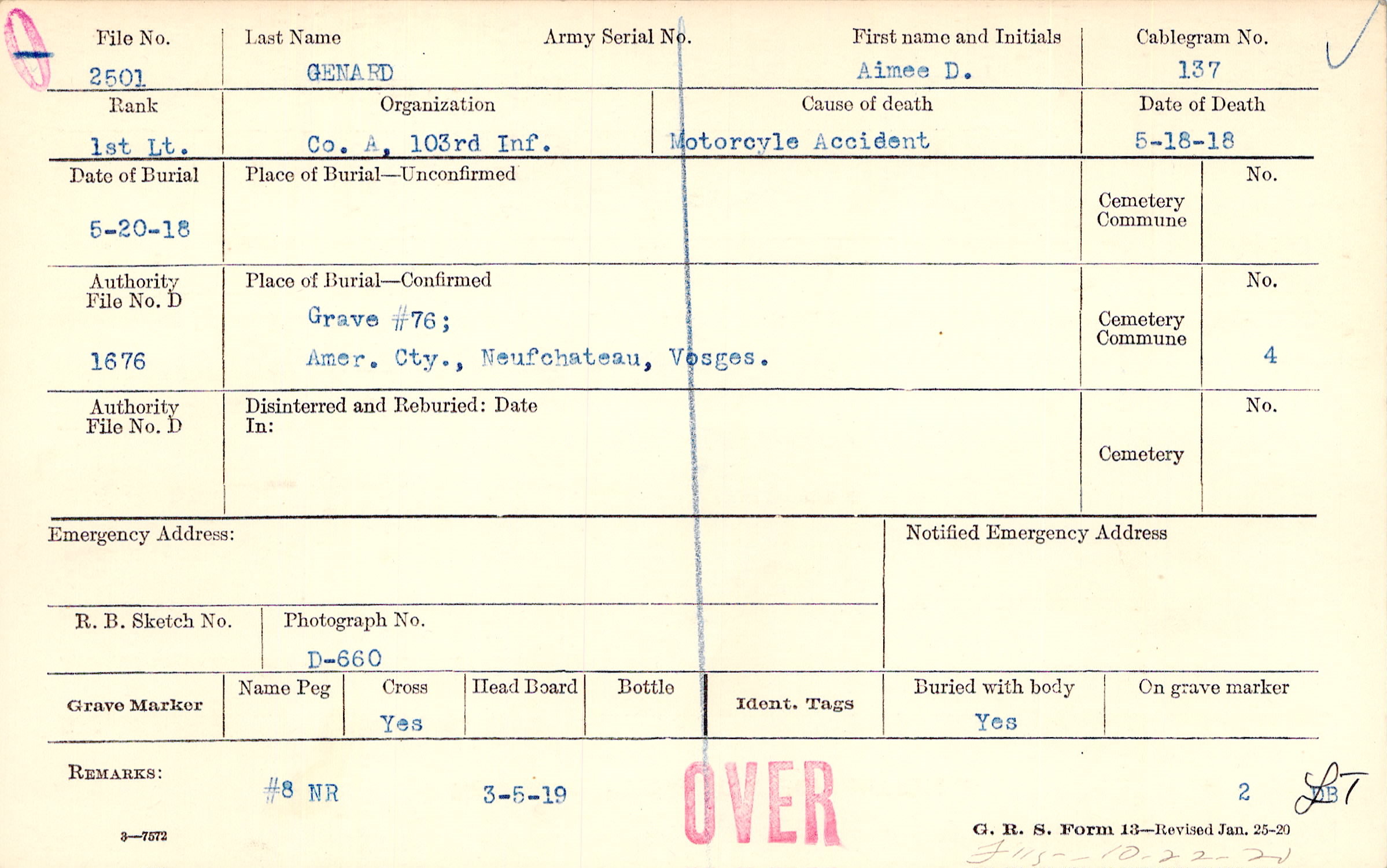 Grave #76, Amer. Cty., Neufchateau, Vosges.