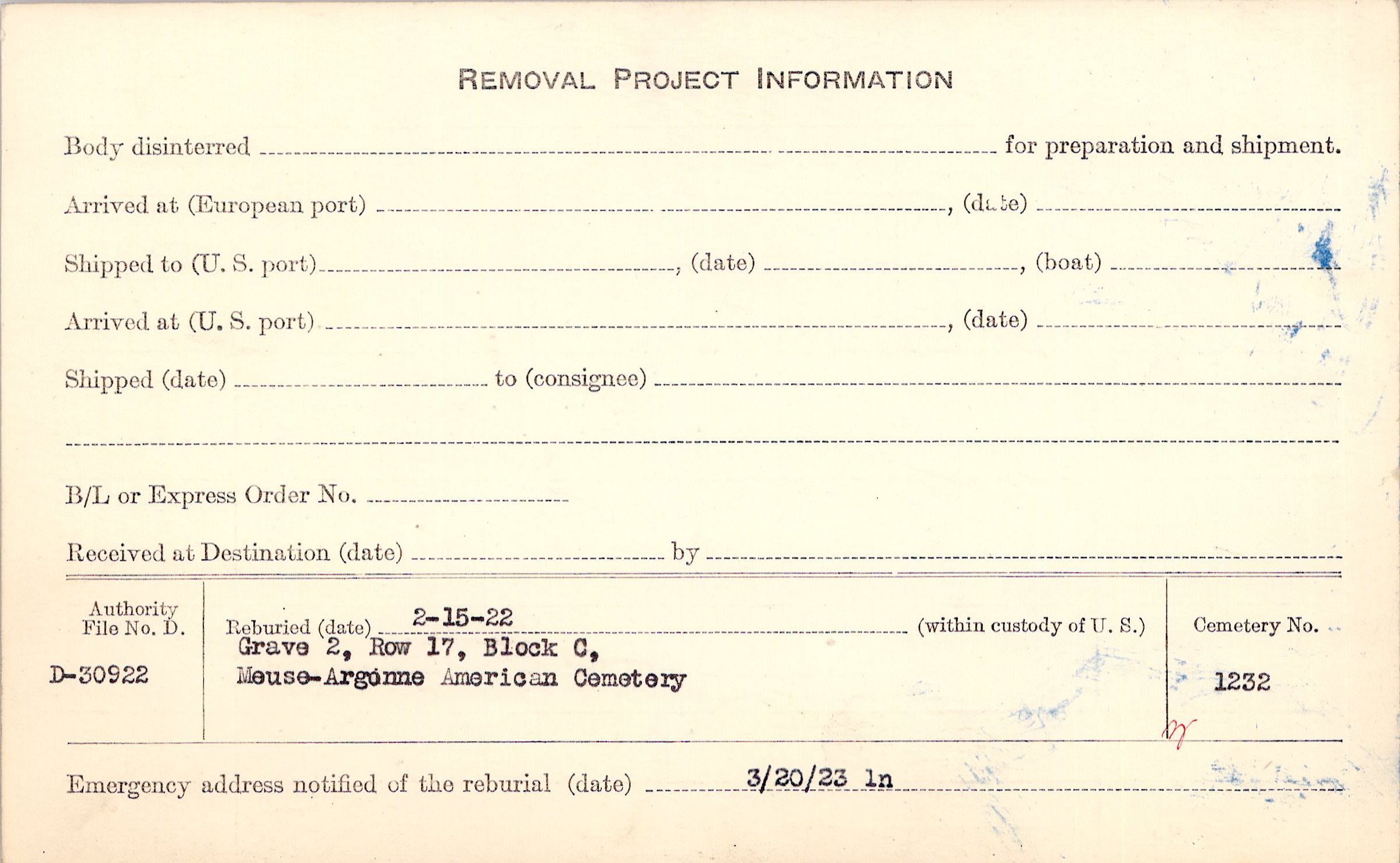 | Permanent Burial in Foreign Cemetery |