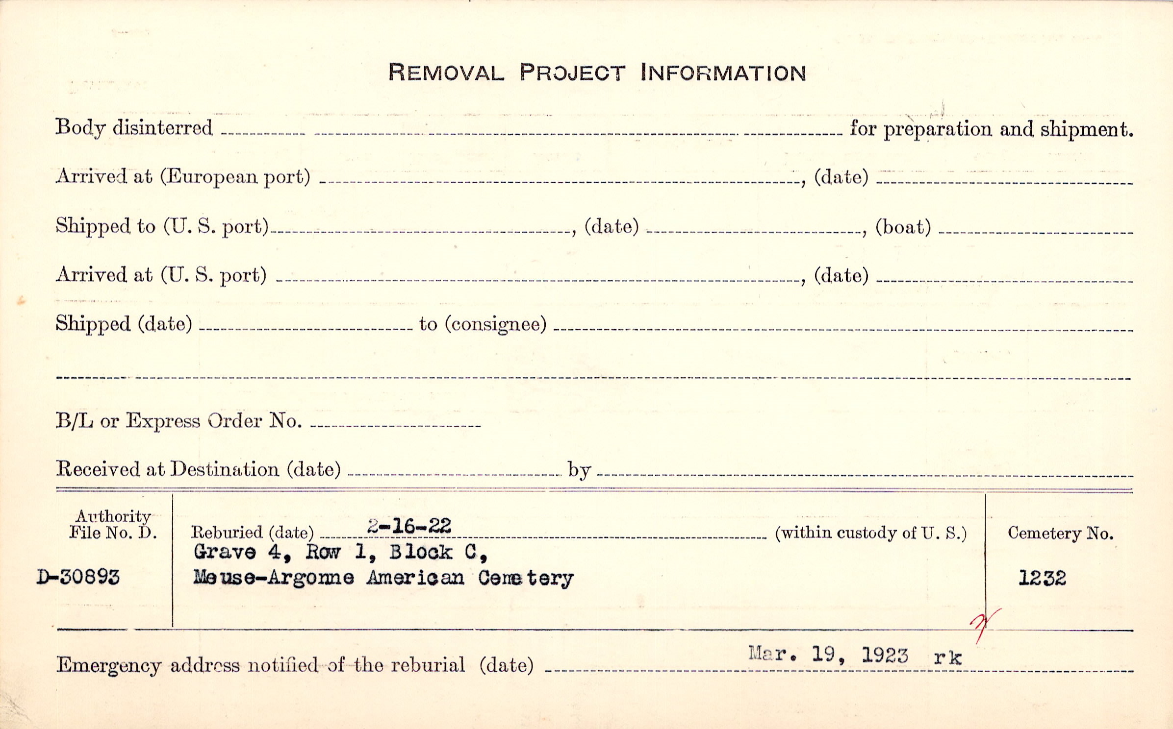 | Permanent Burial in Foreign Cemetery |