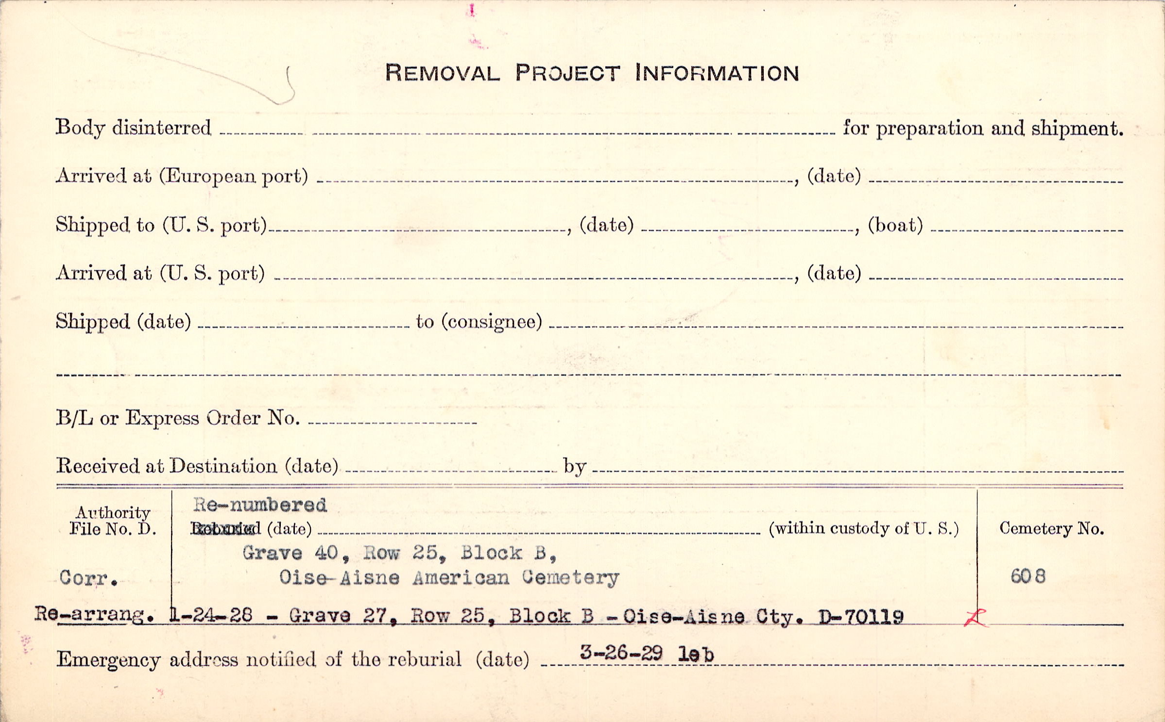 Prior Burial in Foreign Cemetery |