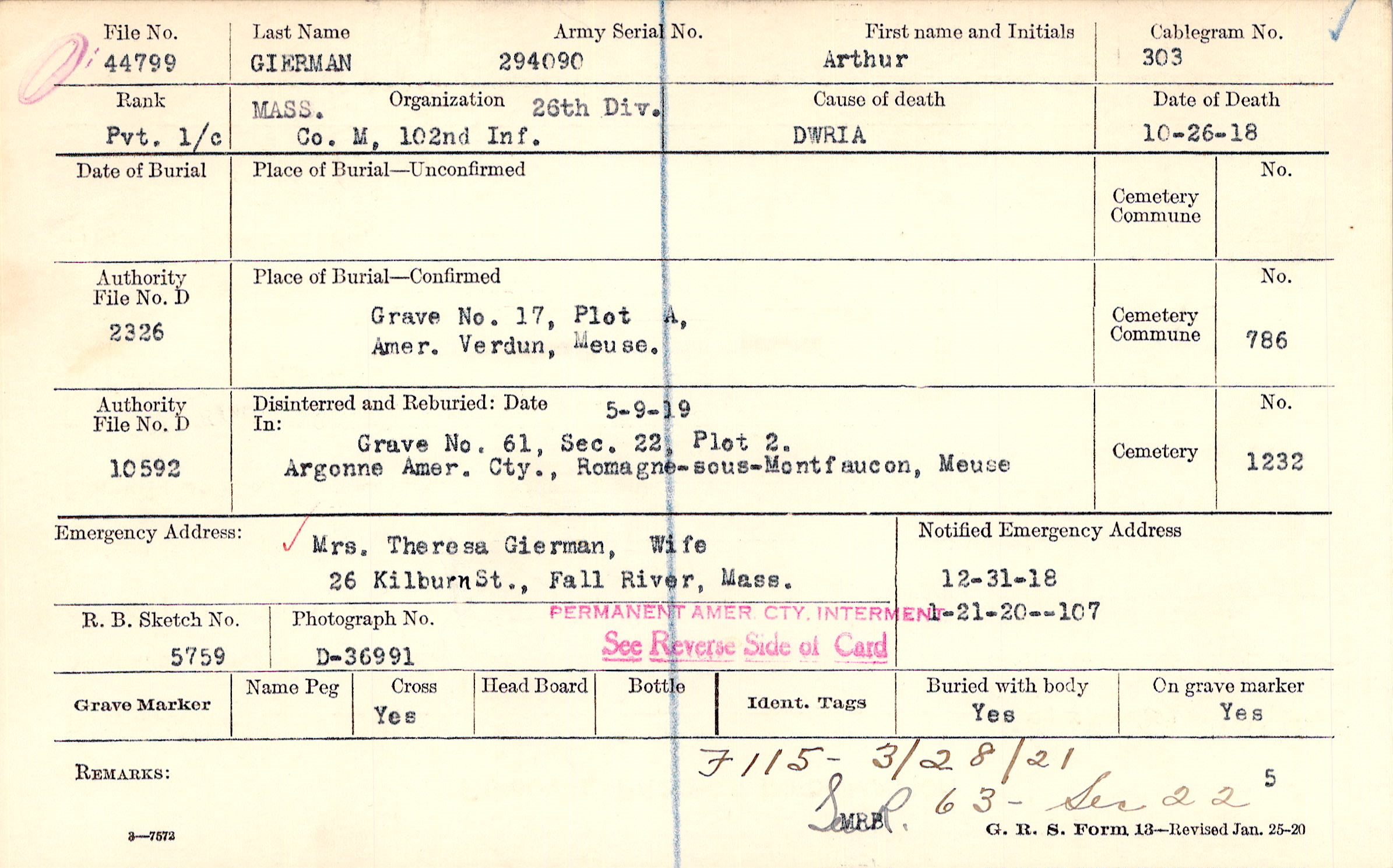 Mrs. Theresa Gierman, Wife, 26 Kilburn St., Fall River, Mass.