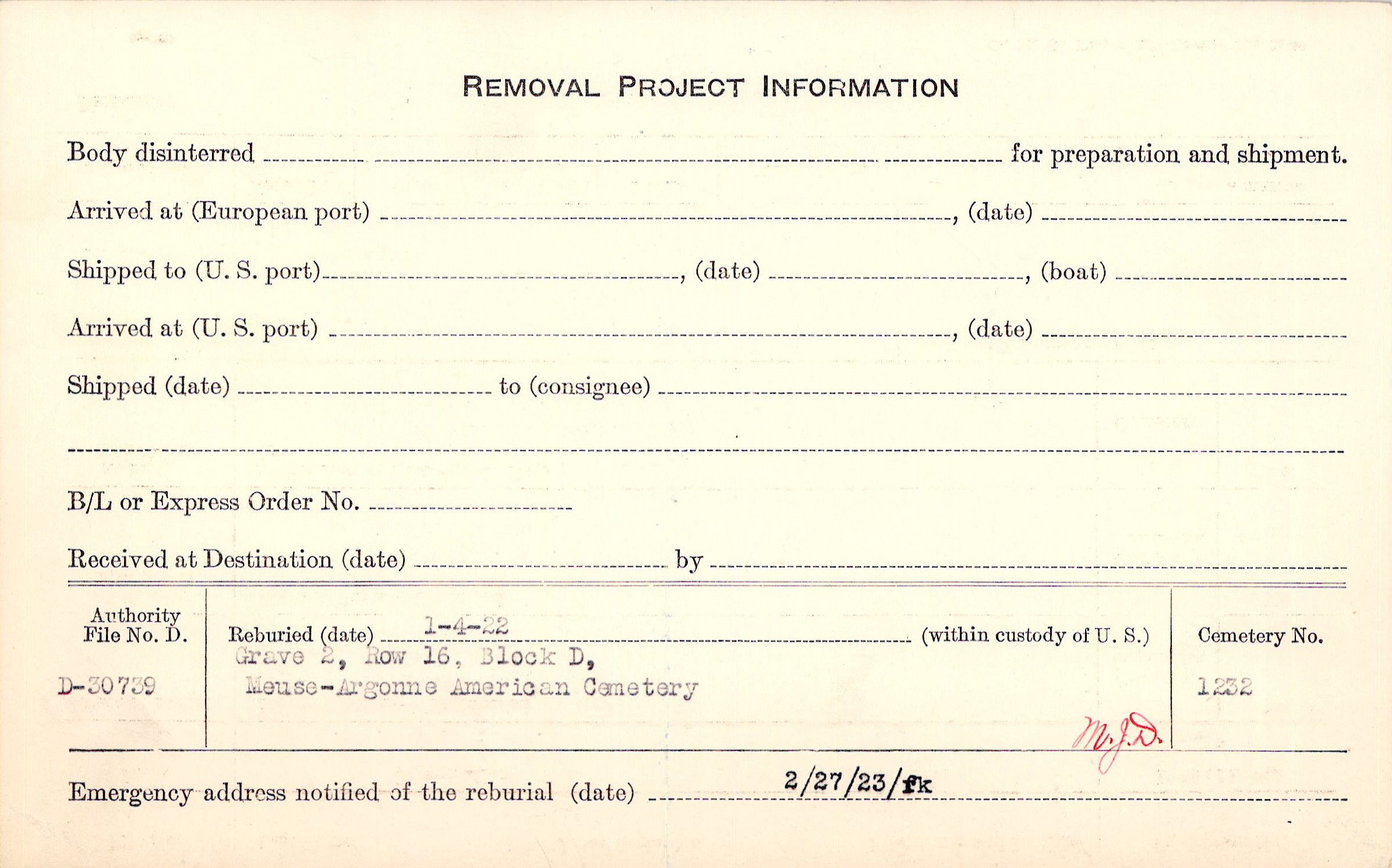 | Permanent Burial in Foreign Cemetery |
