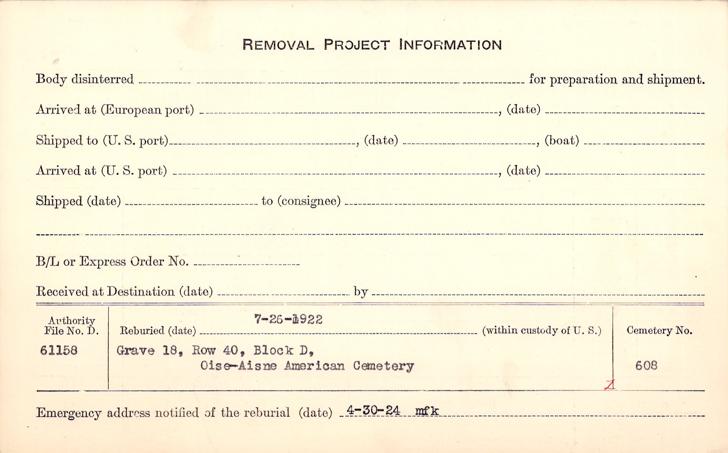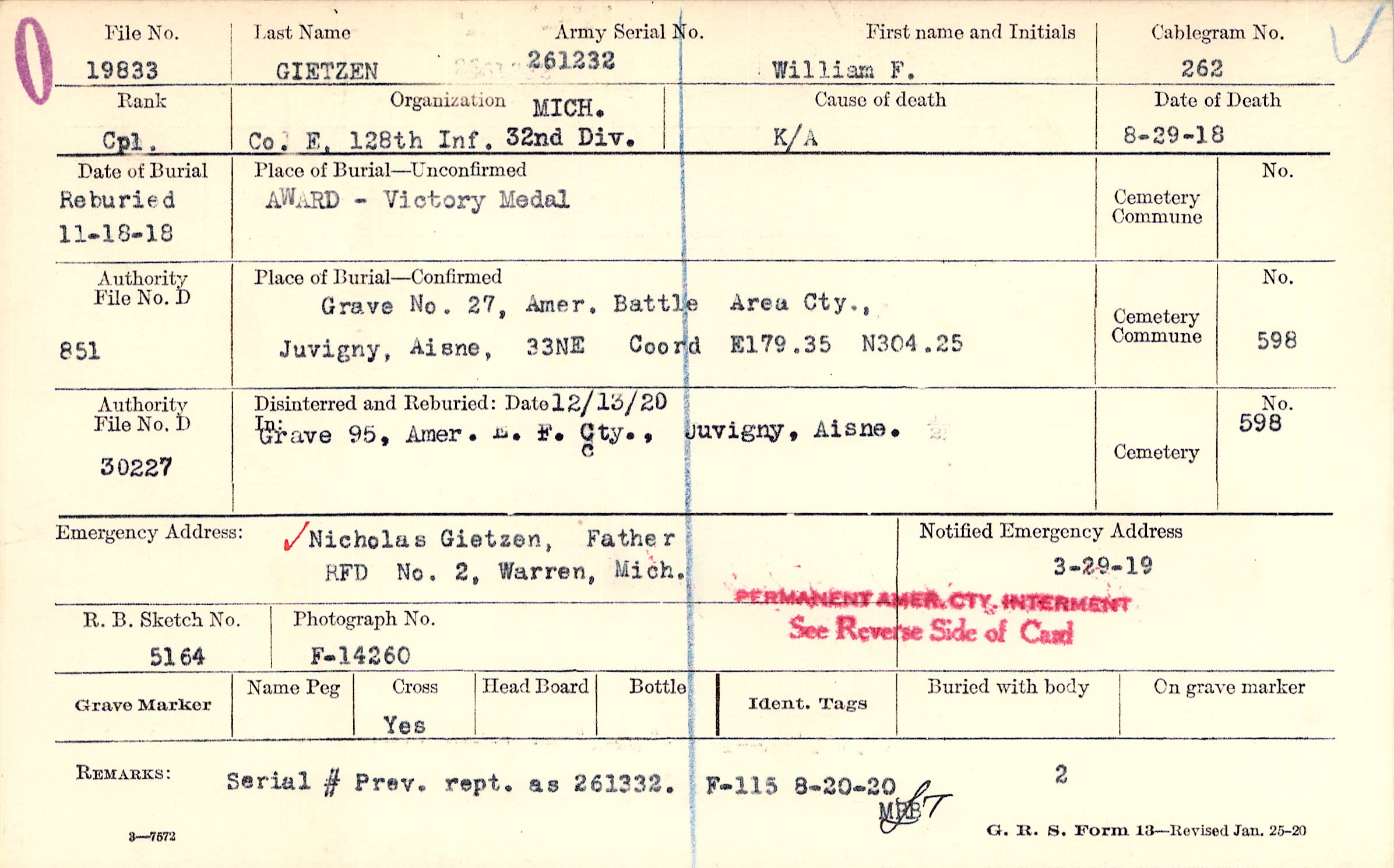 Grave 27, Amer. Battle Area Cty., Juvigny, Aisne, 33NE