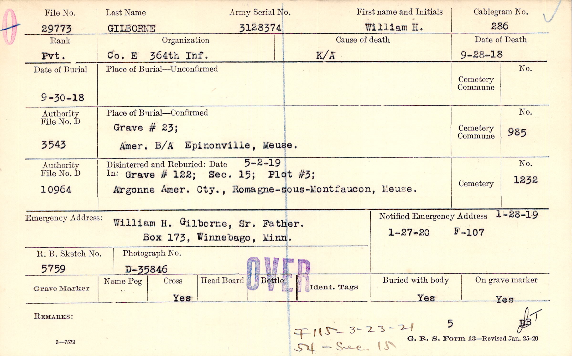 Grave #23, Amer. B/A, Epinonville, Meuse