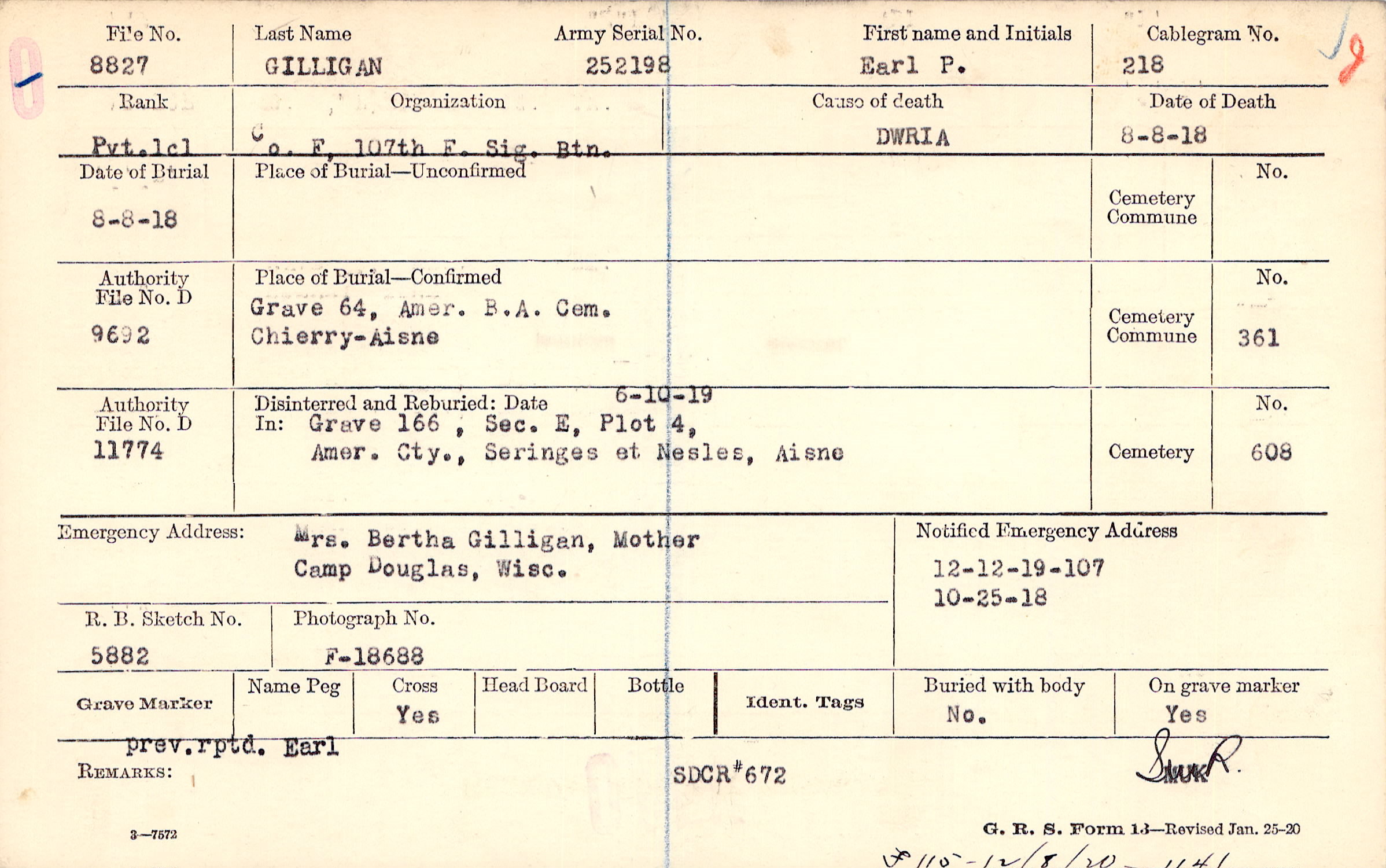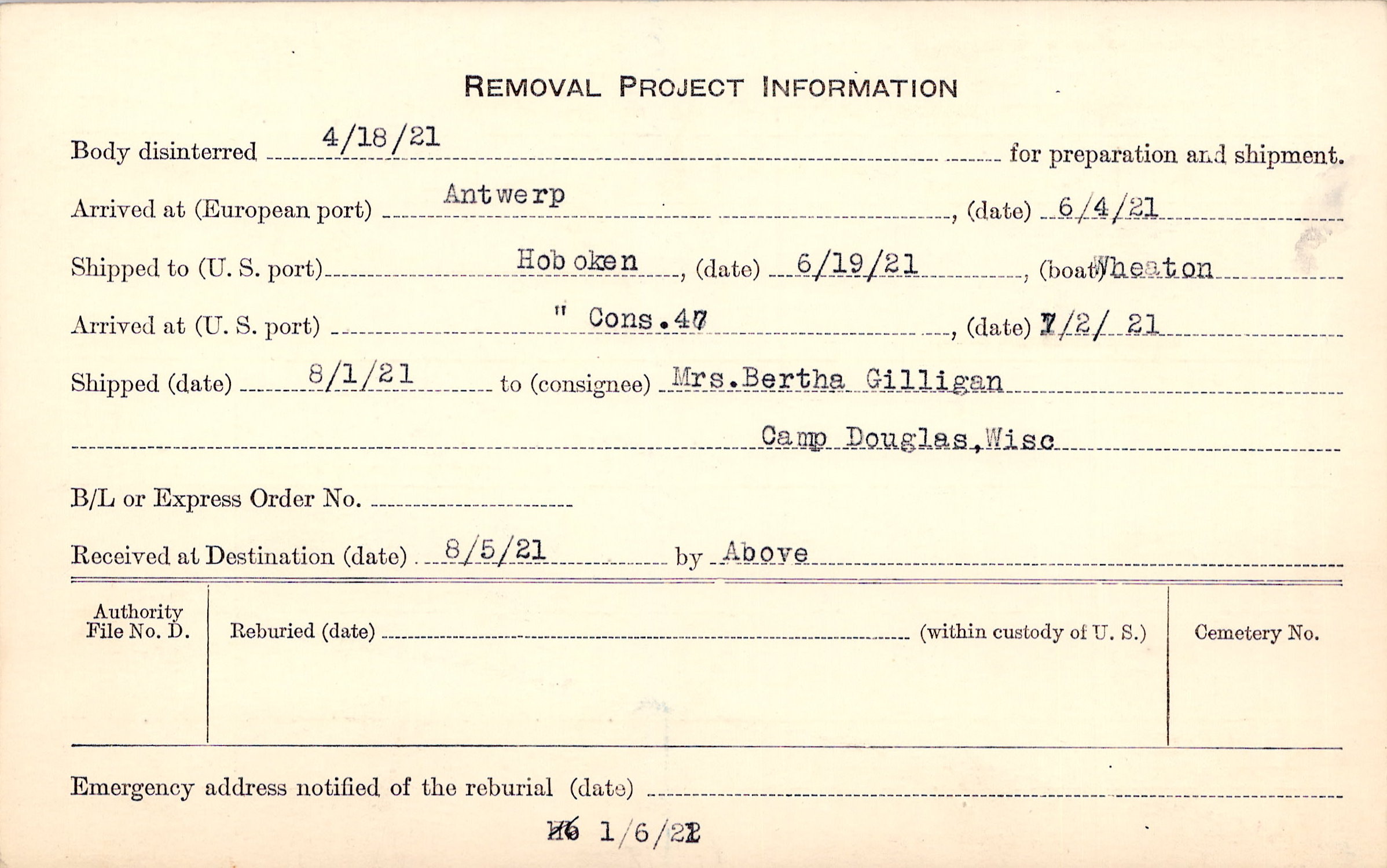 Mrs. Bertha Gilligan, Mother, Camp Douglas, Wisc.