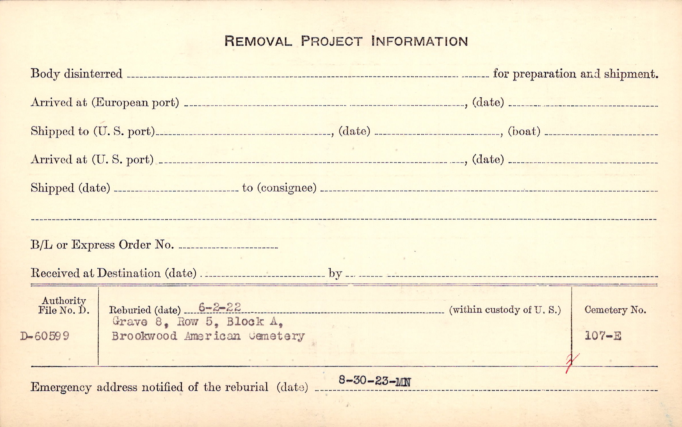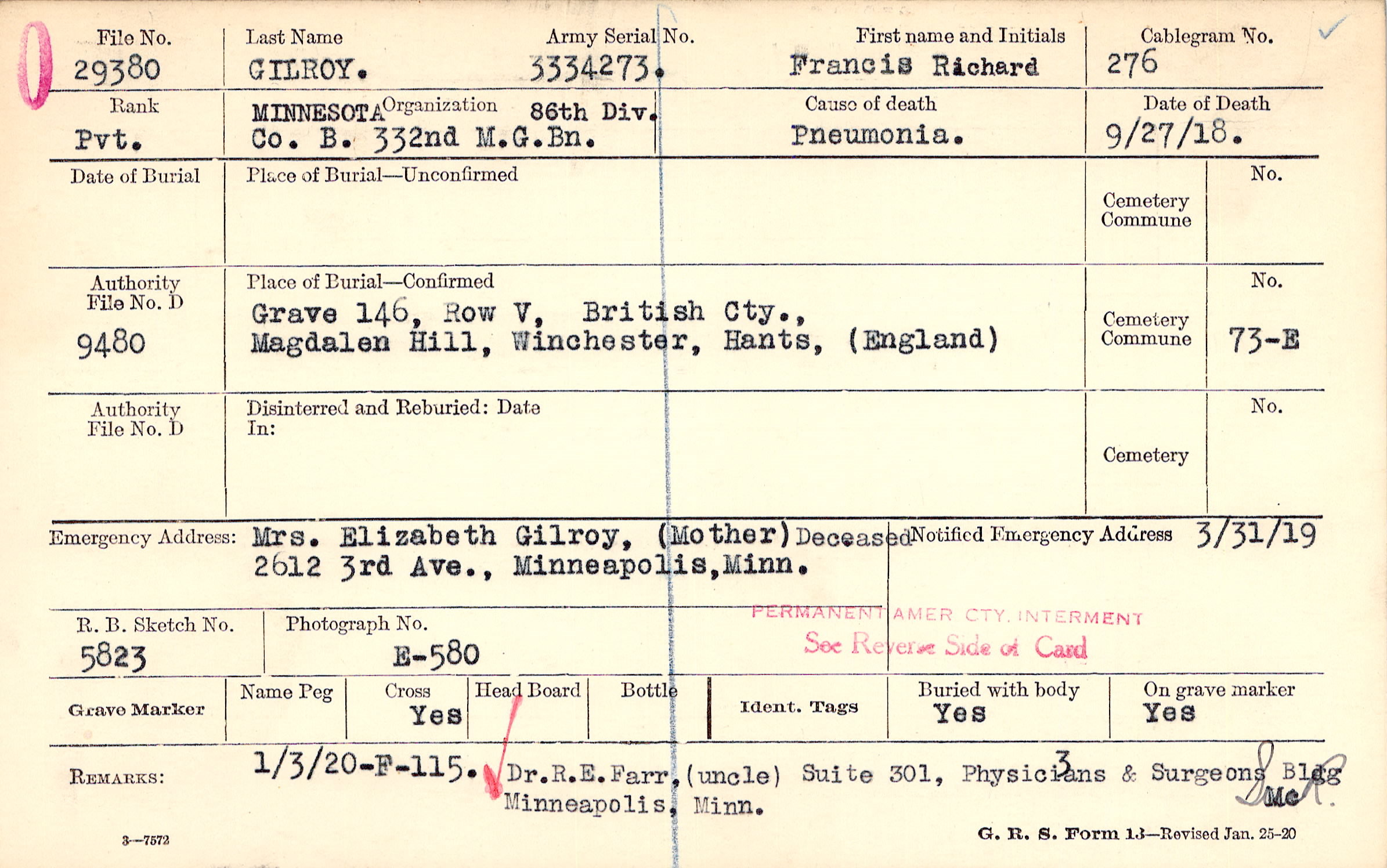 Mrs. Elizabeth Gilroy, (Mother), 2612 3rd Ave., Minneapolis,Minn., Deceased