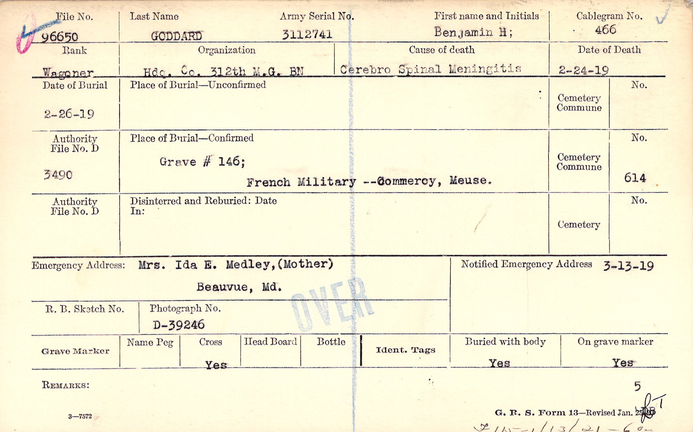 Grave #146, French Military, Commercy, Meuse.