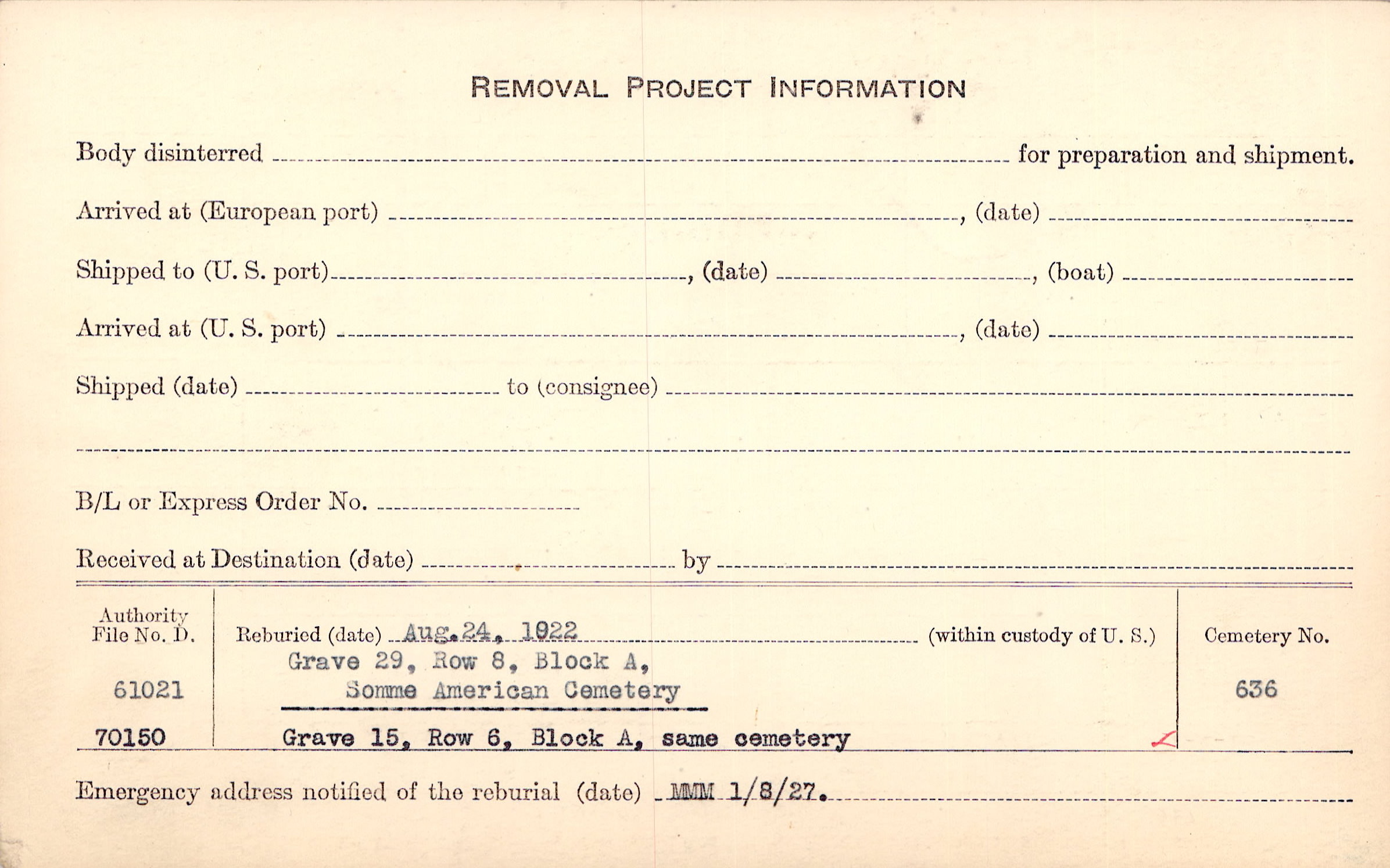 Prior Burial in Foreign Cemetery |
