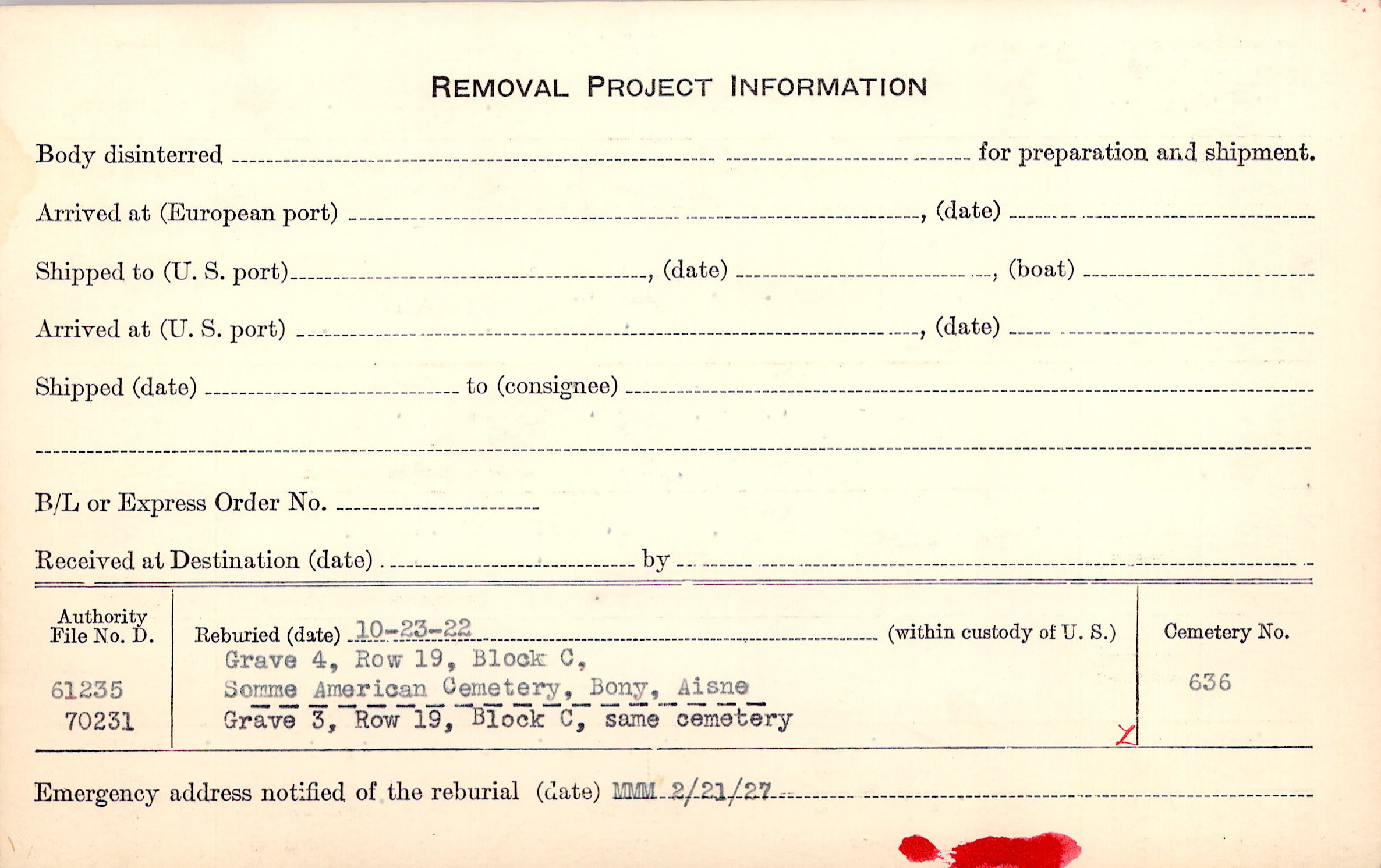 Prior Burial in Foreign Cemetery |