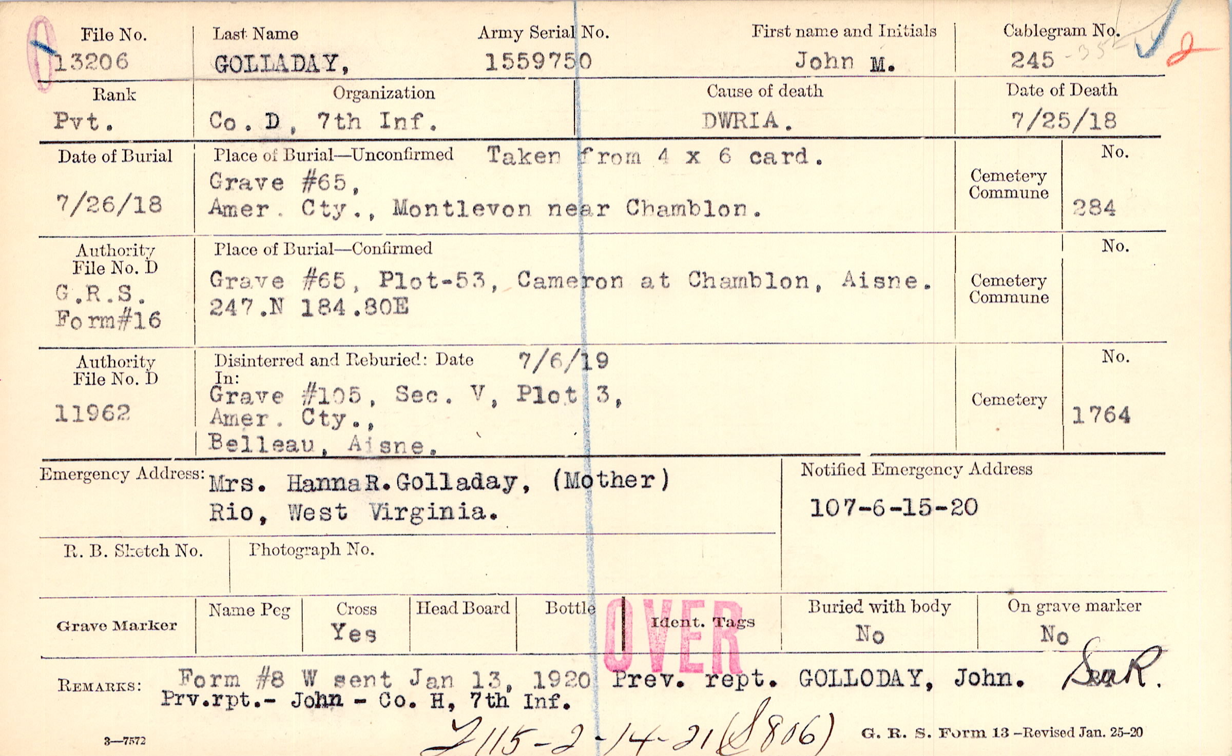 Mrs. Hanna R. Golladay, (Mother), Rio, West Virginia.
