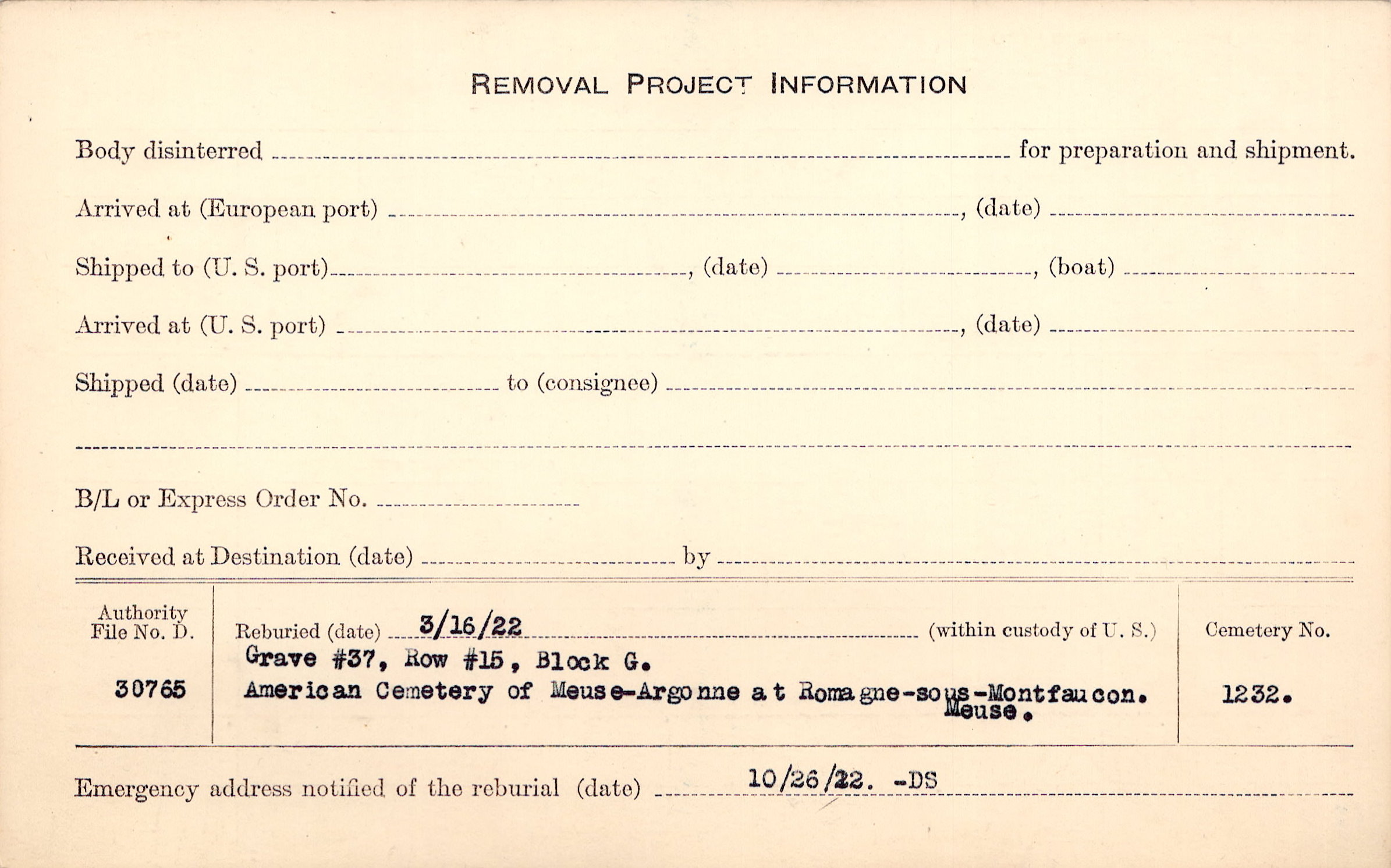 Grave 46, Amern., B/A Cty., Romagne-sous-Montfaucon, Meuse