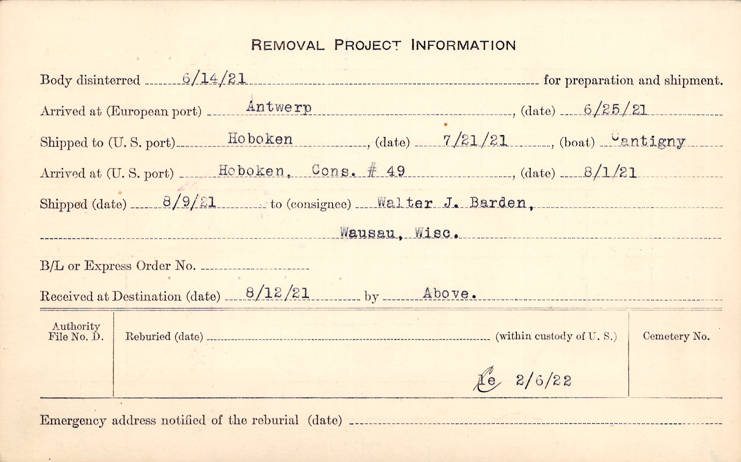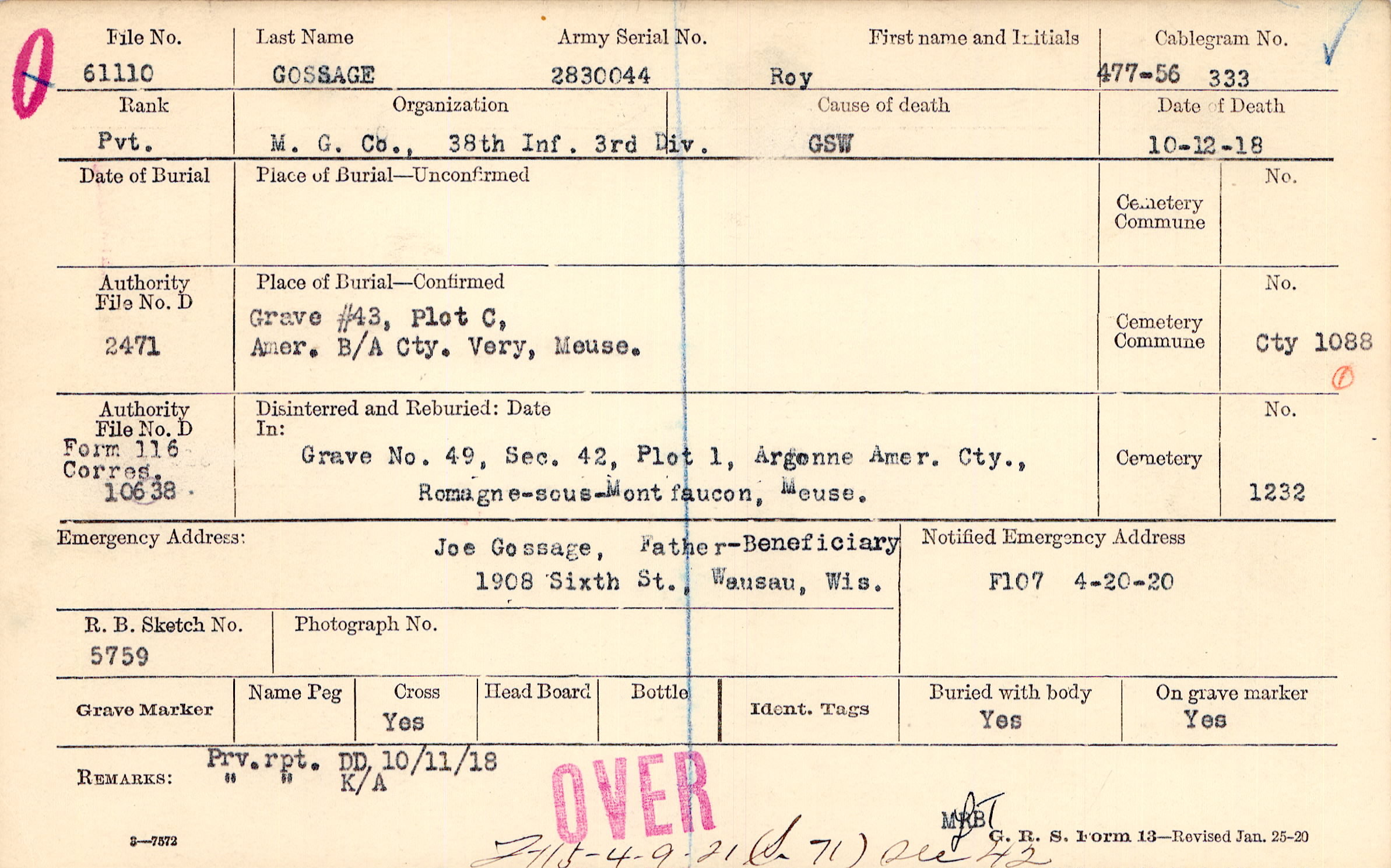 Grave #43, Plot C, Amer. B/A Cty., Very, Meuse.
