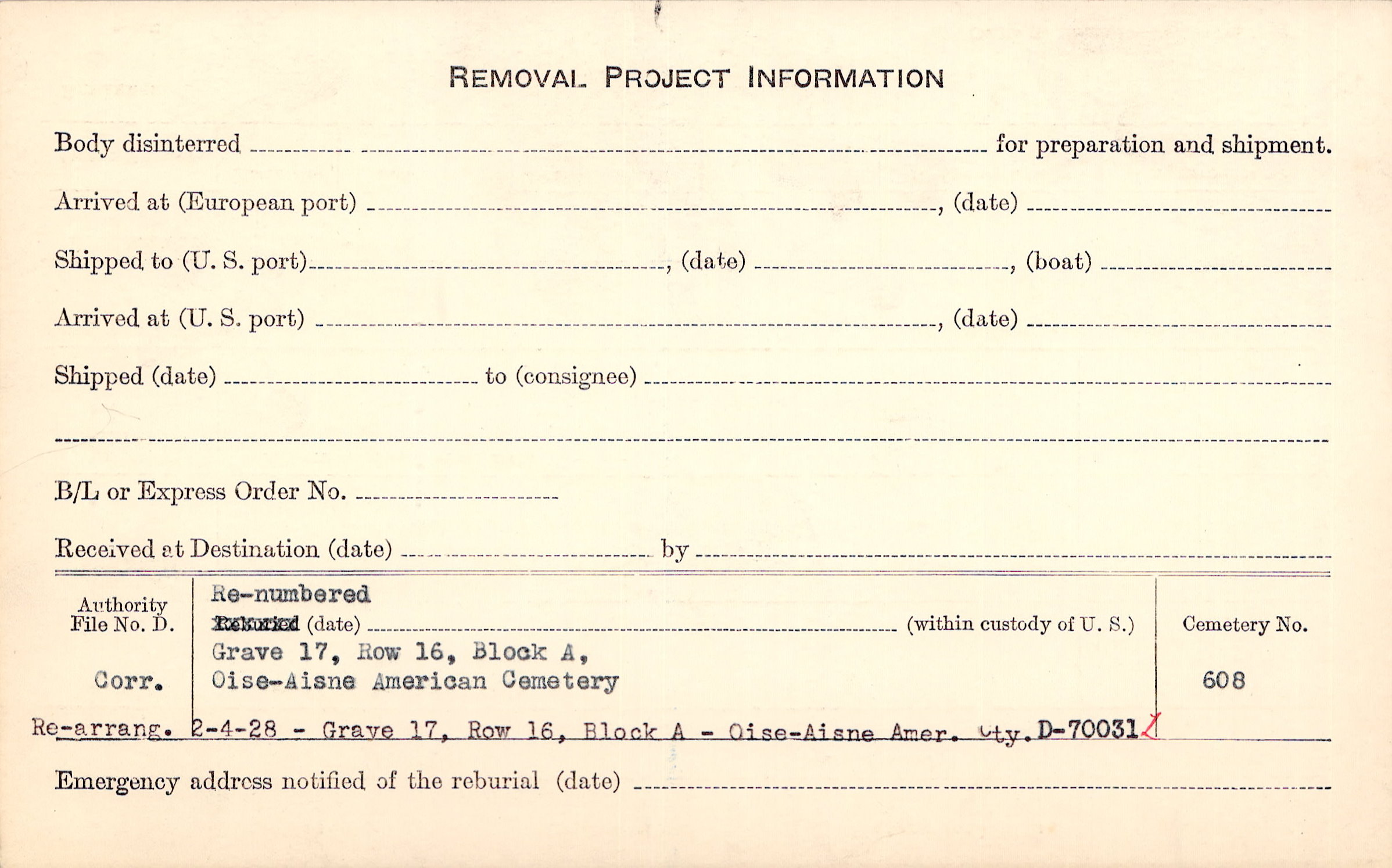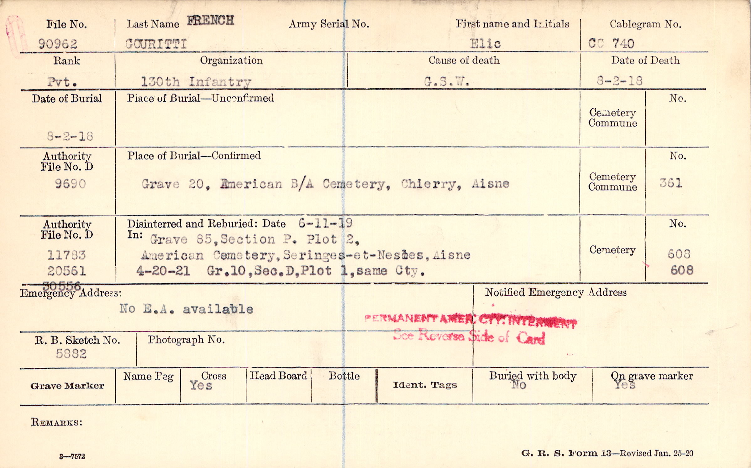 Prior Burial in Foreign Cemetery |