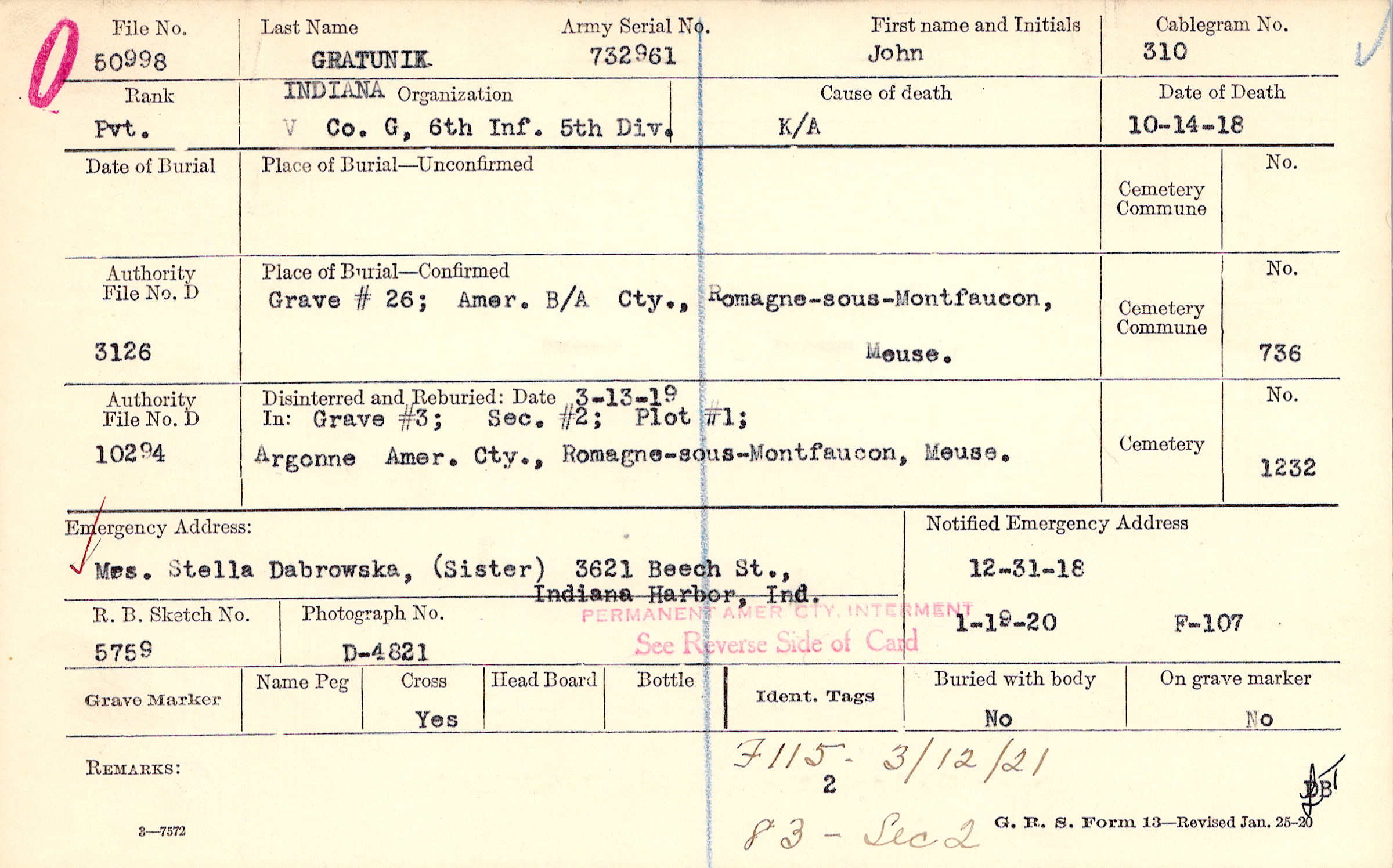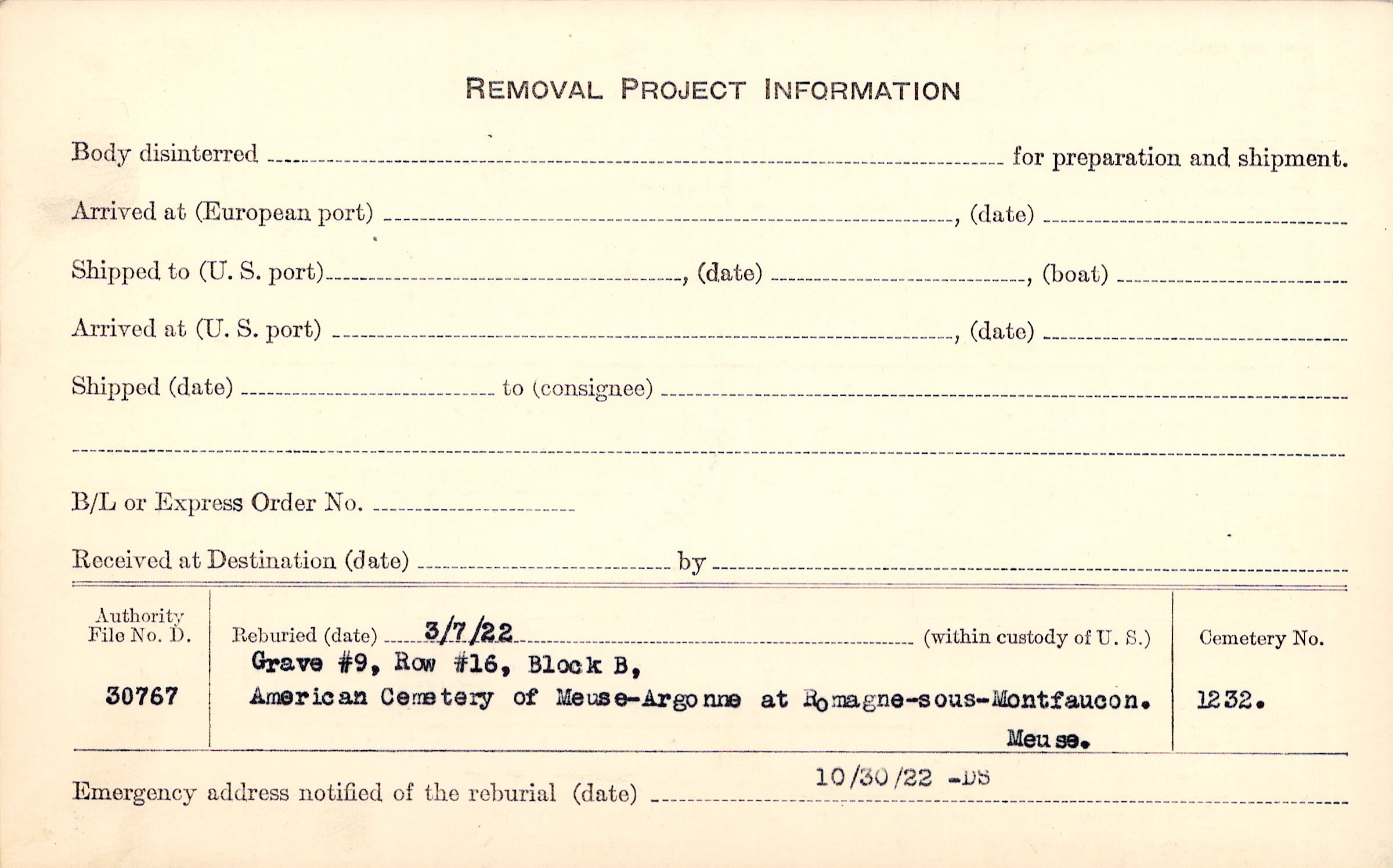 Grave #26, Amer. B/A Cty., Reomagne-sous-Montfaucon, Meuse