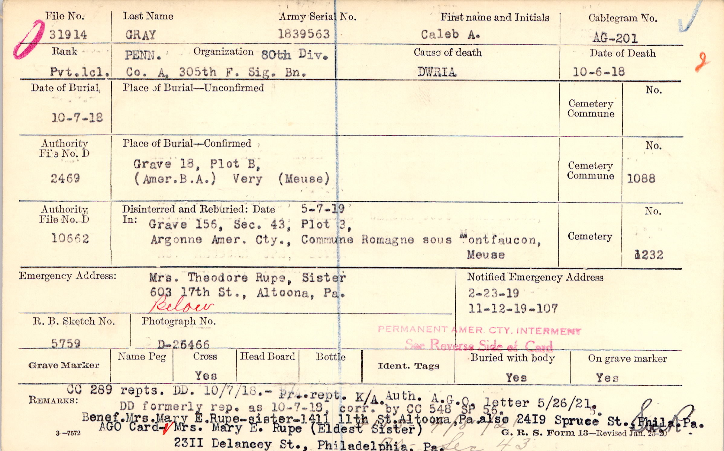 Grave 18, Plot B, (Amer. B/A), Very, (Meuse)