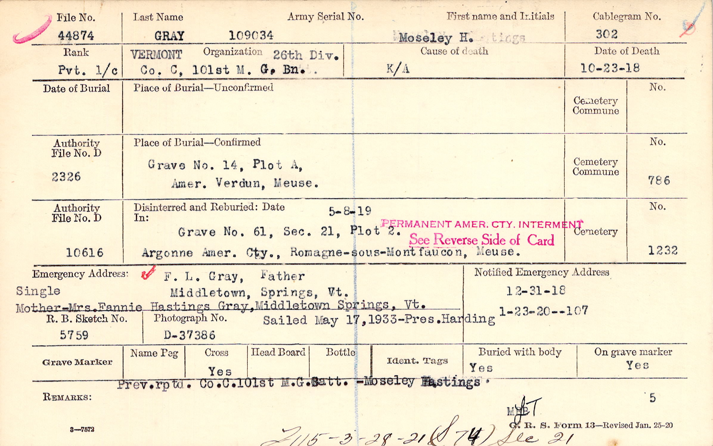 Grave 14, Plot A, Amer. Verdun, Meuse