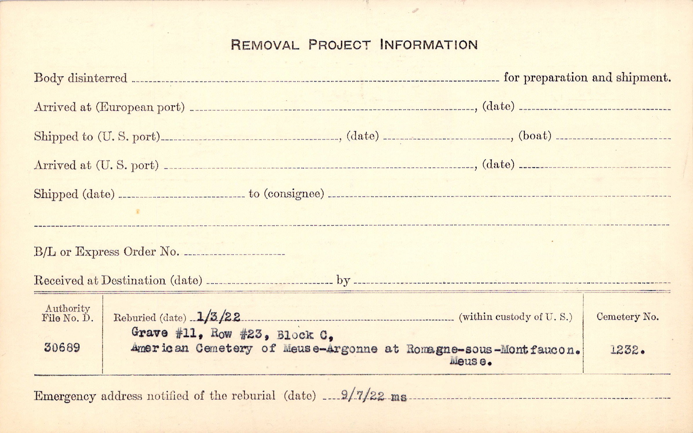 Grave 61, Section 21, Plot 2, Argonne American Cemetery, Romagne-sous-Montfaucon, Meuse