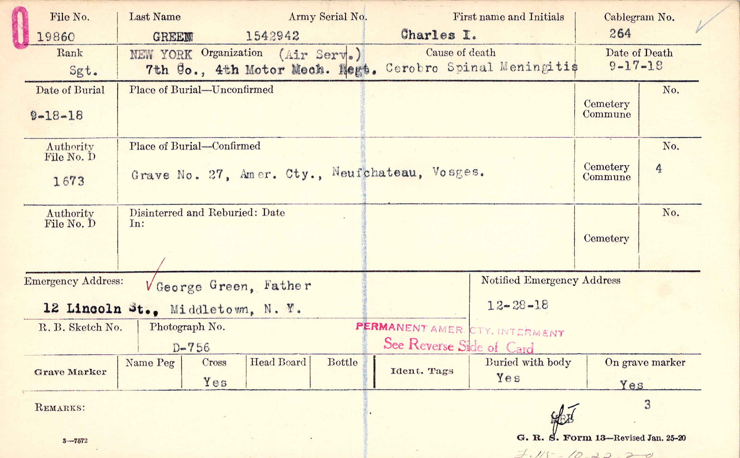 Grave 27, Amer. Cty., Neufchateau, Vosges.,