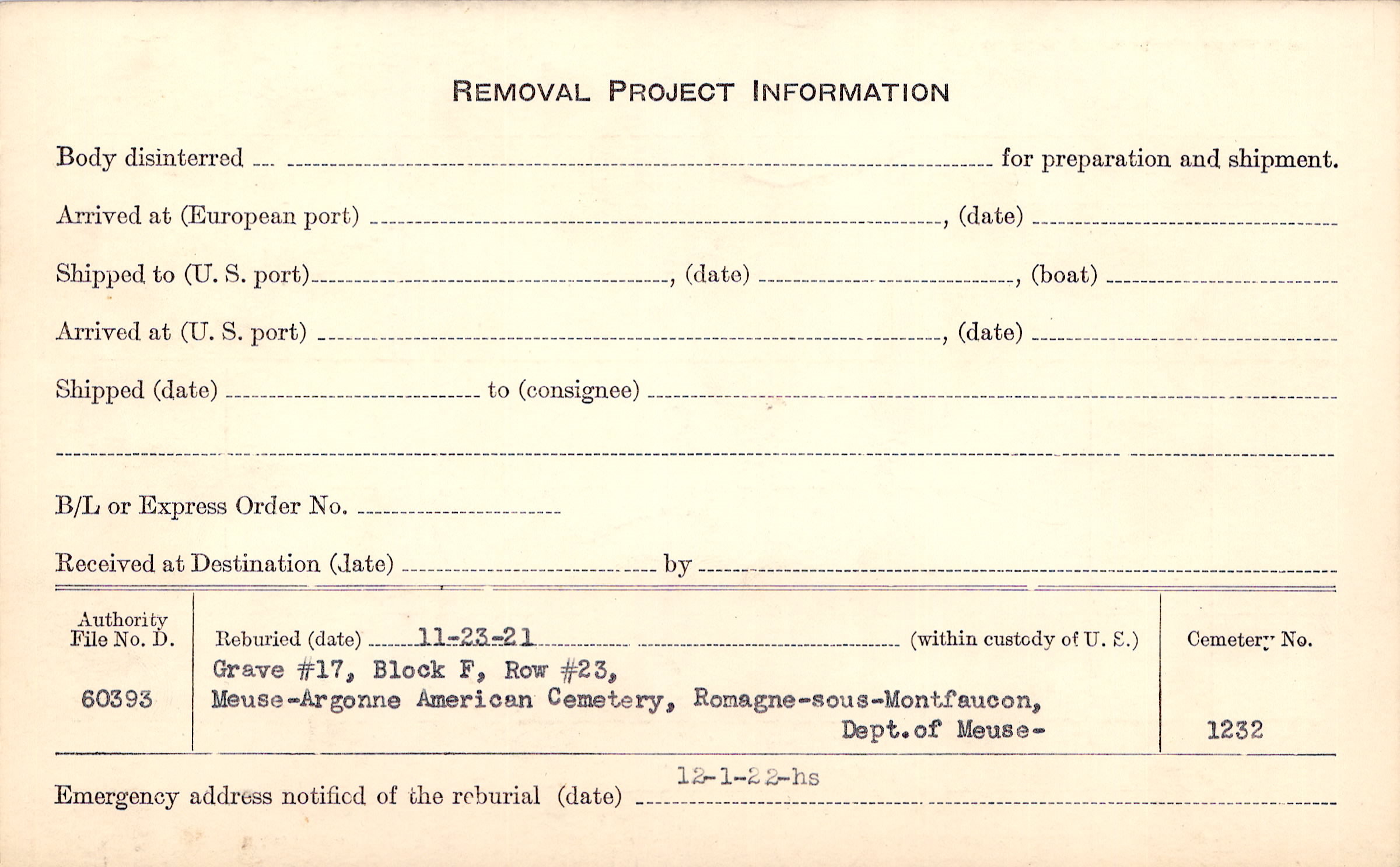 | Permanent Burial in Foreign Cemetery |