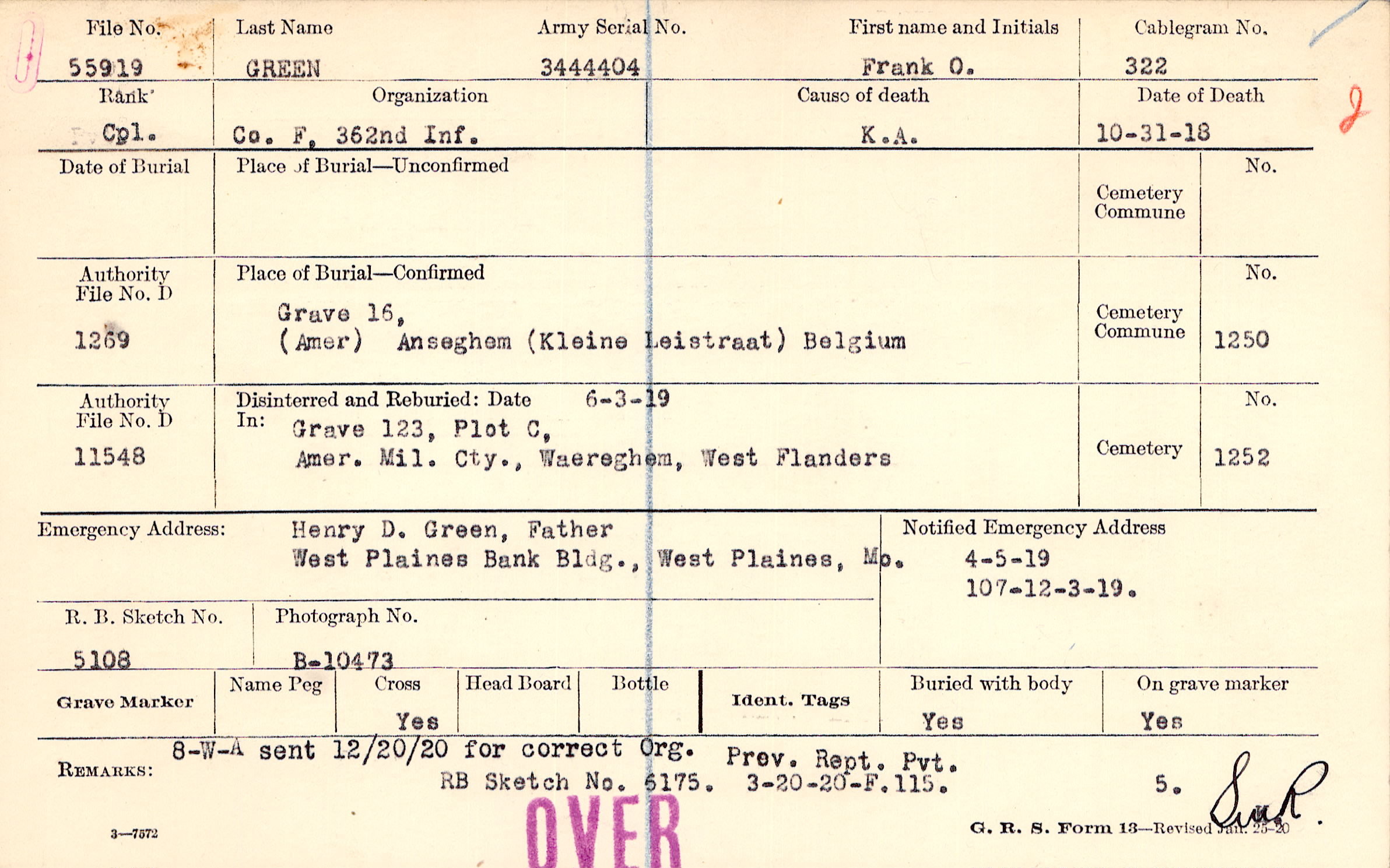 RB Sketch No. 6175. Prev. Rept. Pvt., 8-W-A sent 12/20/20 for correct Org., 3-20-20-F.115.