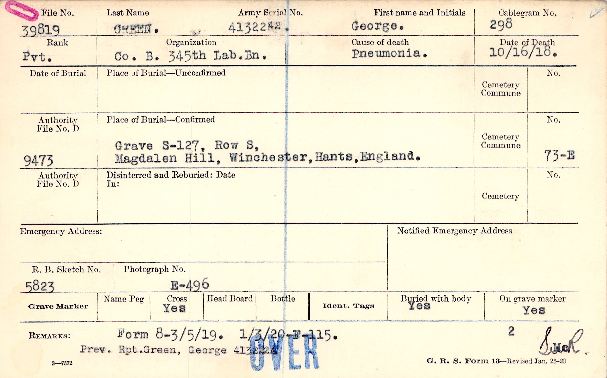 Prev. Rpt. Green, George 4132224, Form 8 - 3/5/19.