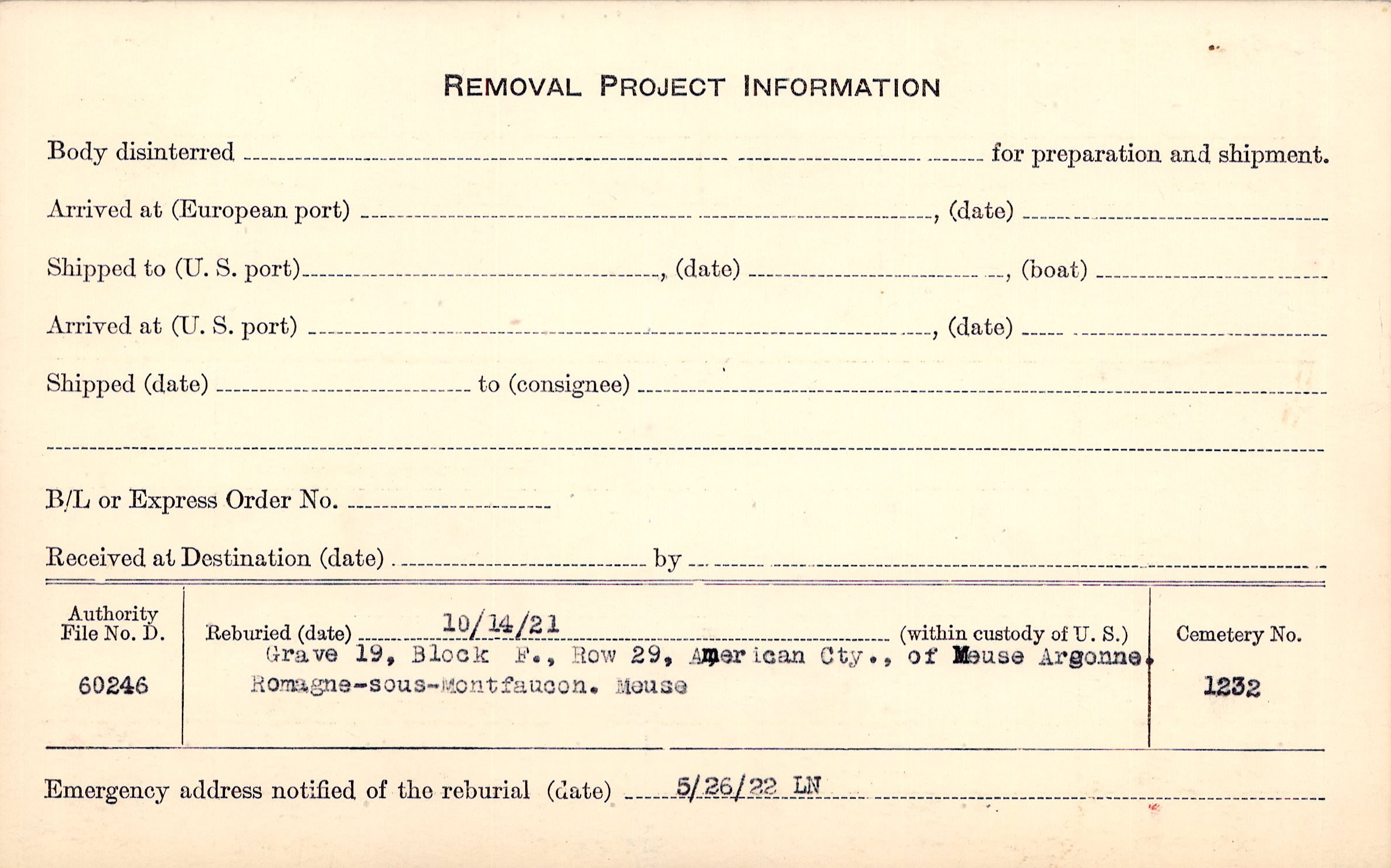 | Permanent Burial in Foreign Cemetery |