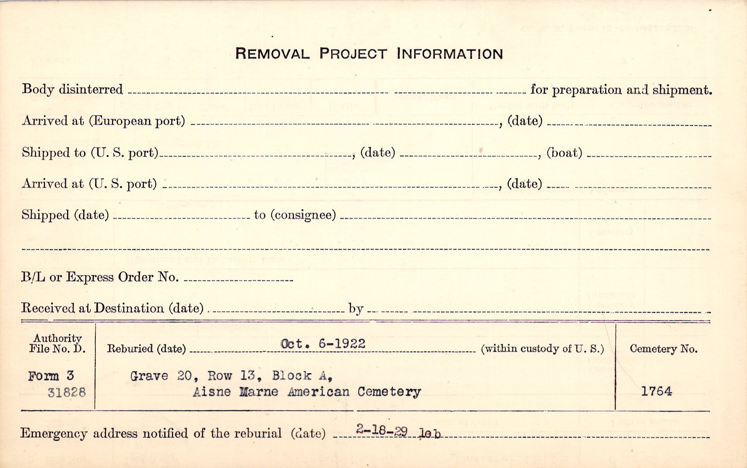 Grave 173, Amer. 3rd Div. /Cty., near Chamblon, Montlevon, Aisne.