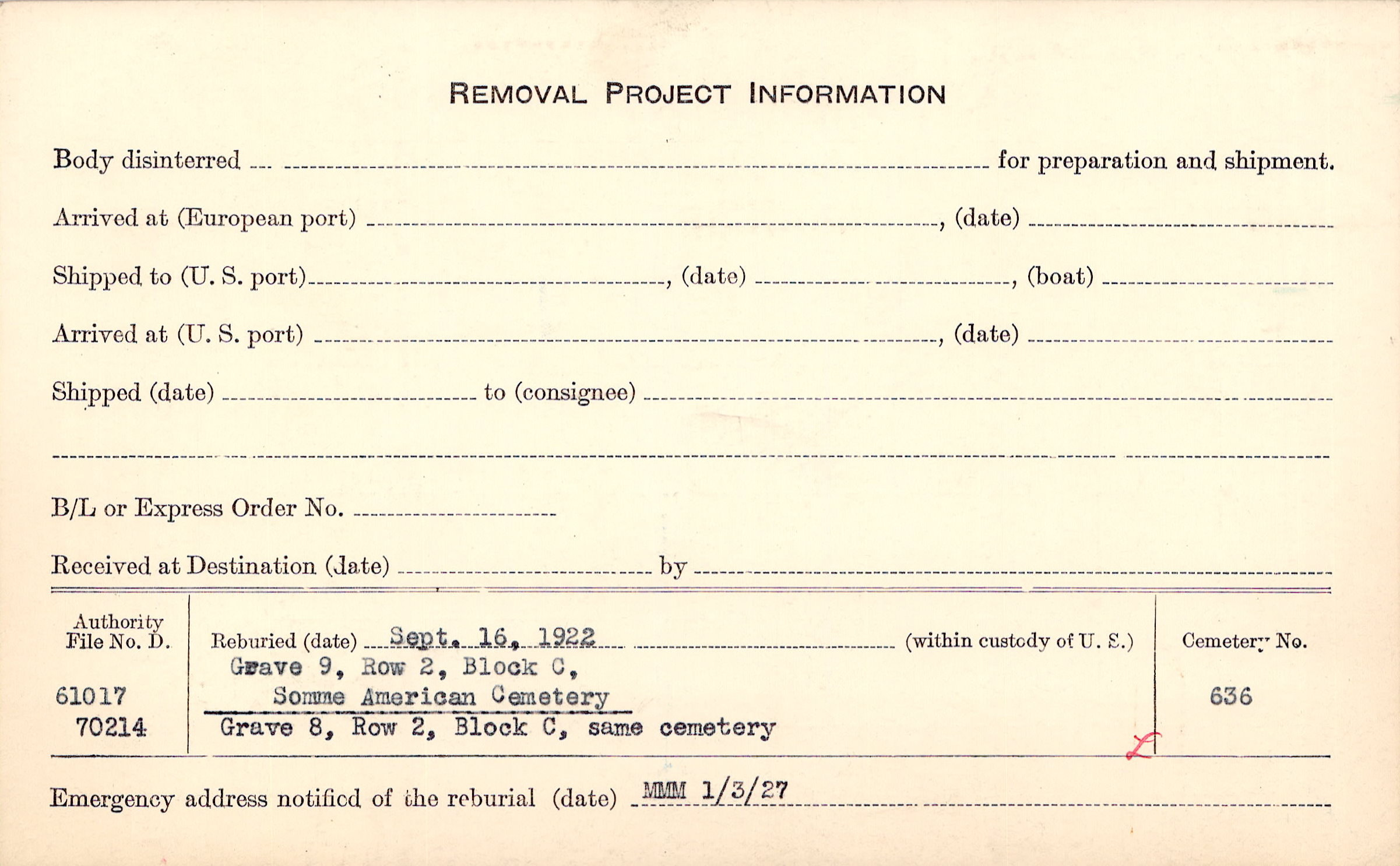 Prior Burial in Foreign Cemetery |