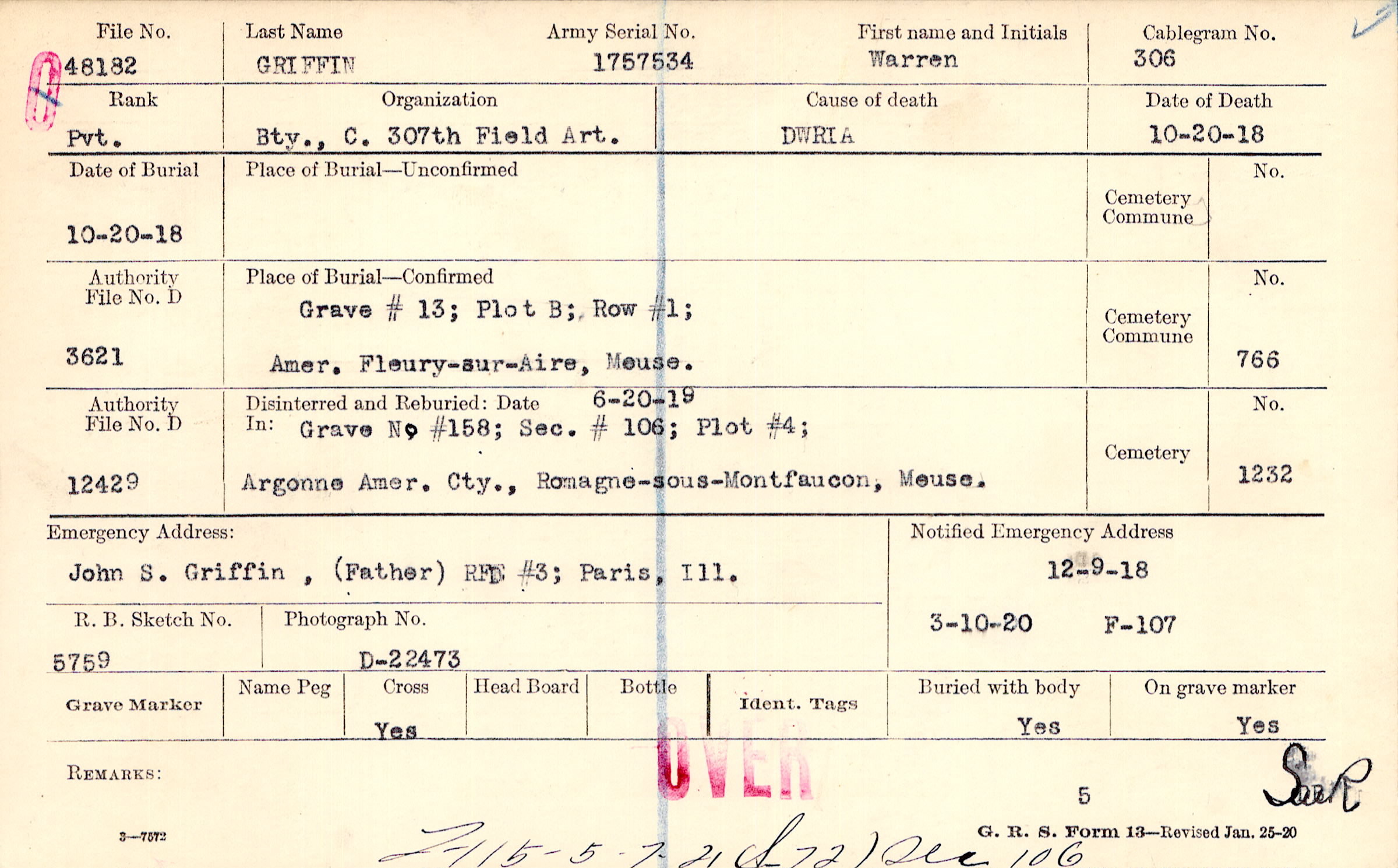 John S. Griffin , (Father), RFD #3; Paris, Ill.