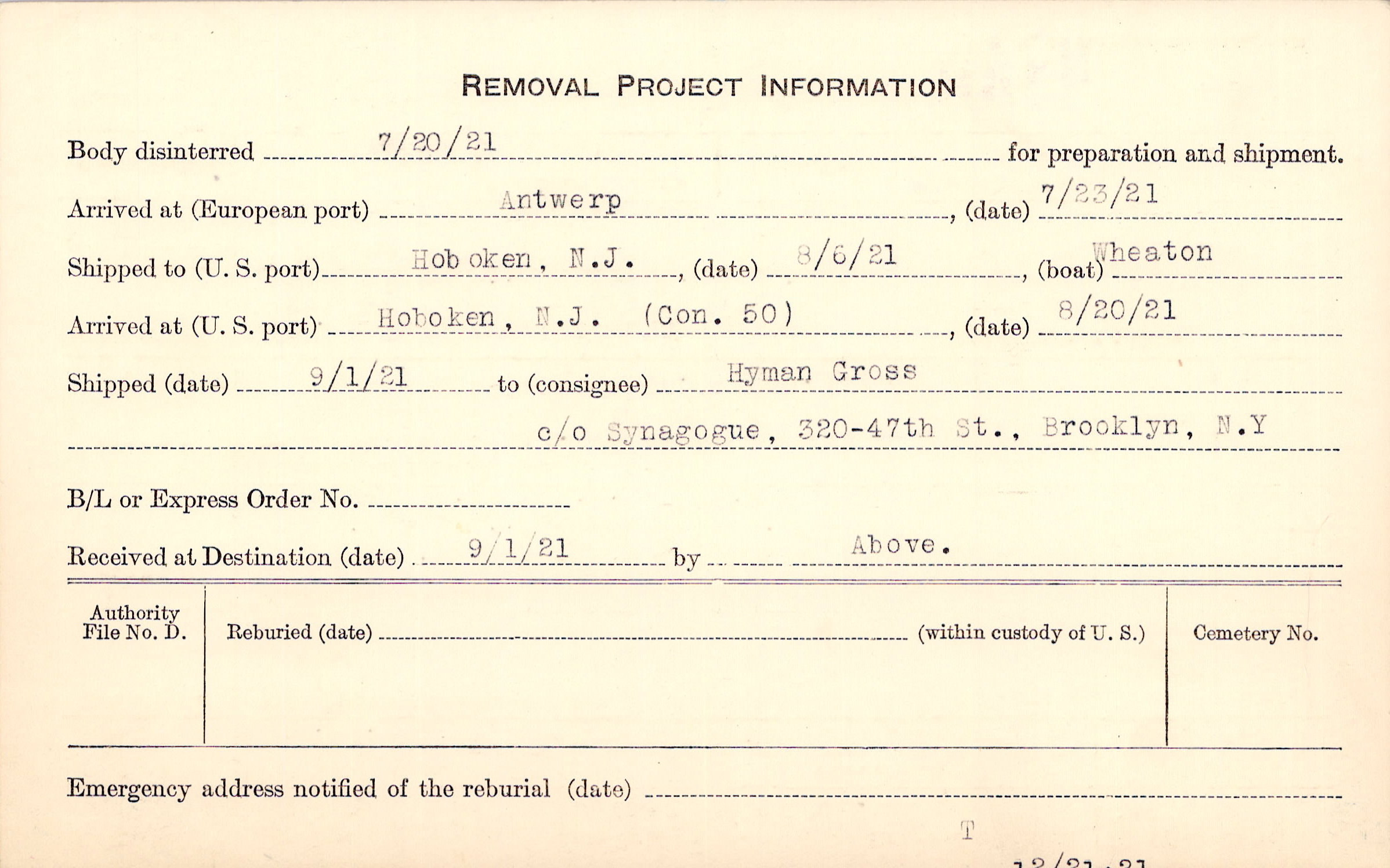 to Hyman Gross, c/o Synagogue, 320-47th St., Brooklyn, N.Y