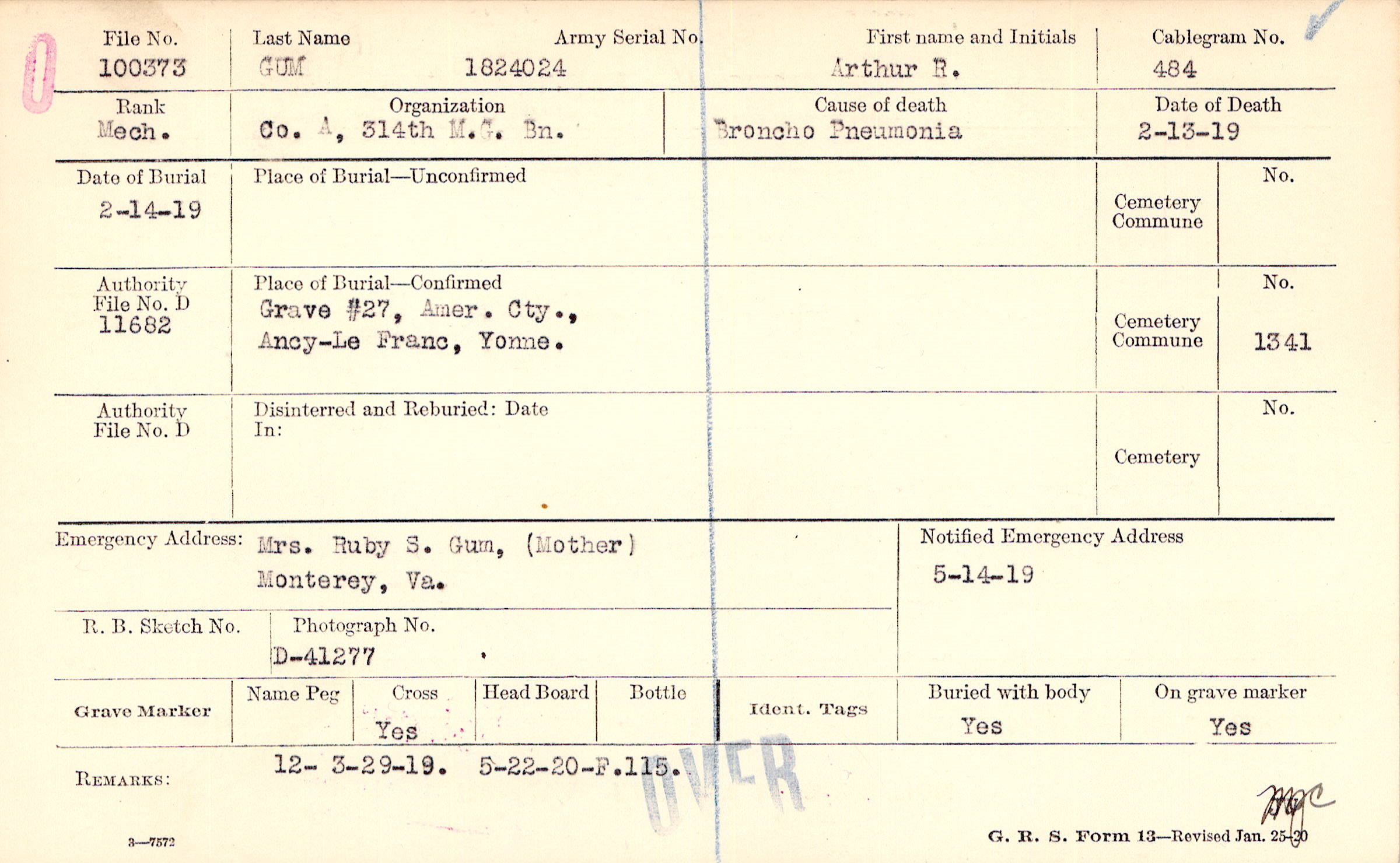 Grave #27, Amer. Cty., Ancy-Le Franc, Yonne.