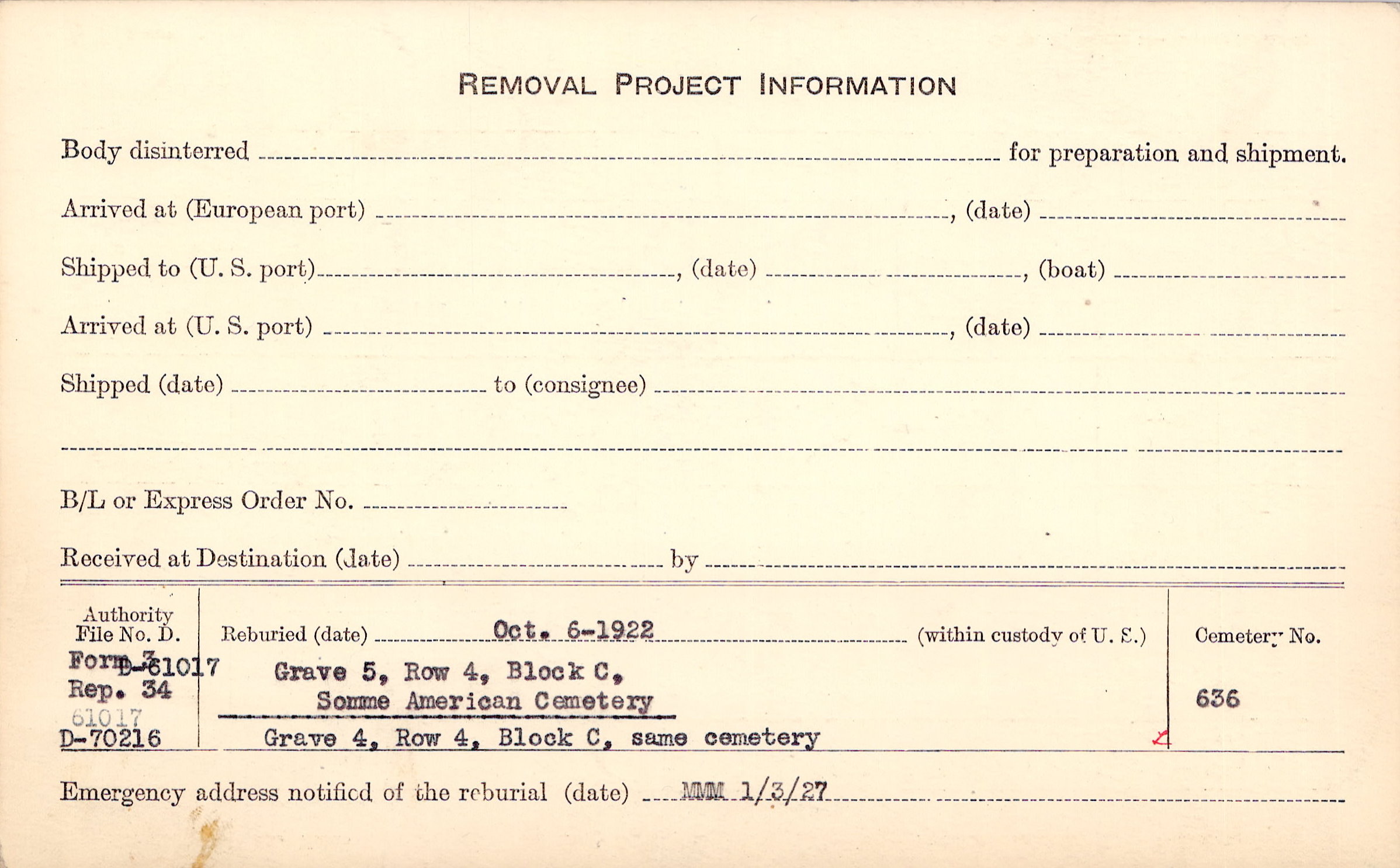 Prior Burial in Foreign Cemetery |