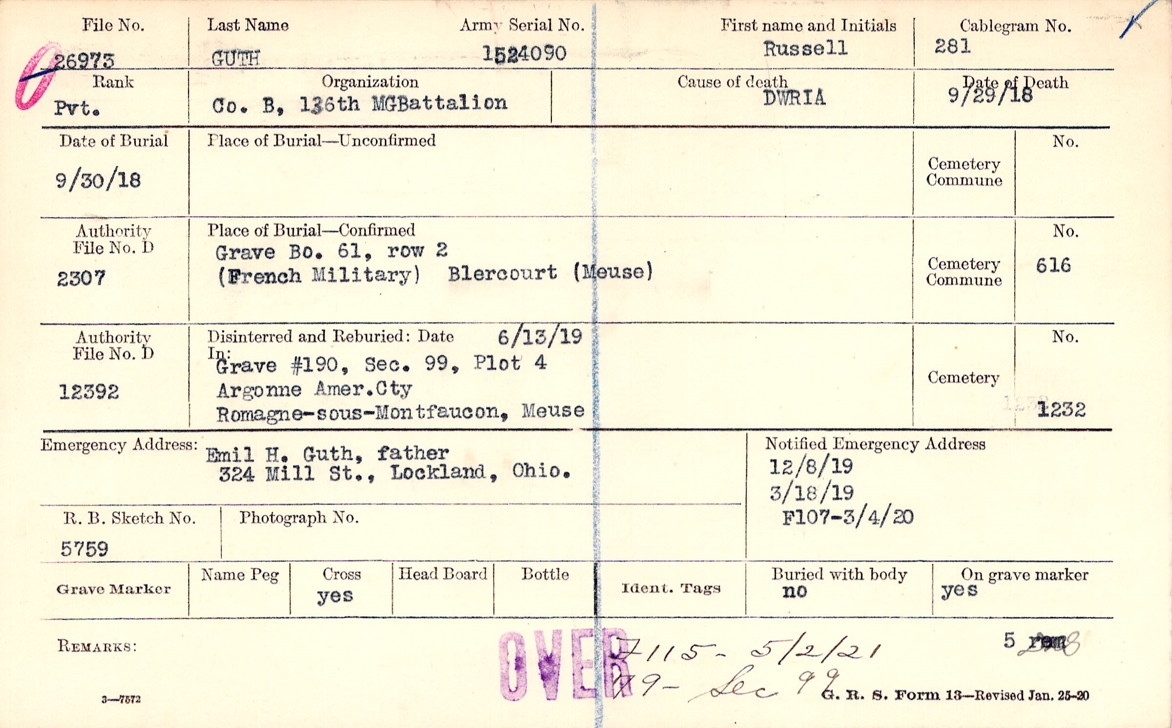 Emil H. Guth, father, 324 Mill St., Lockland, Ohio.