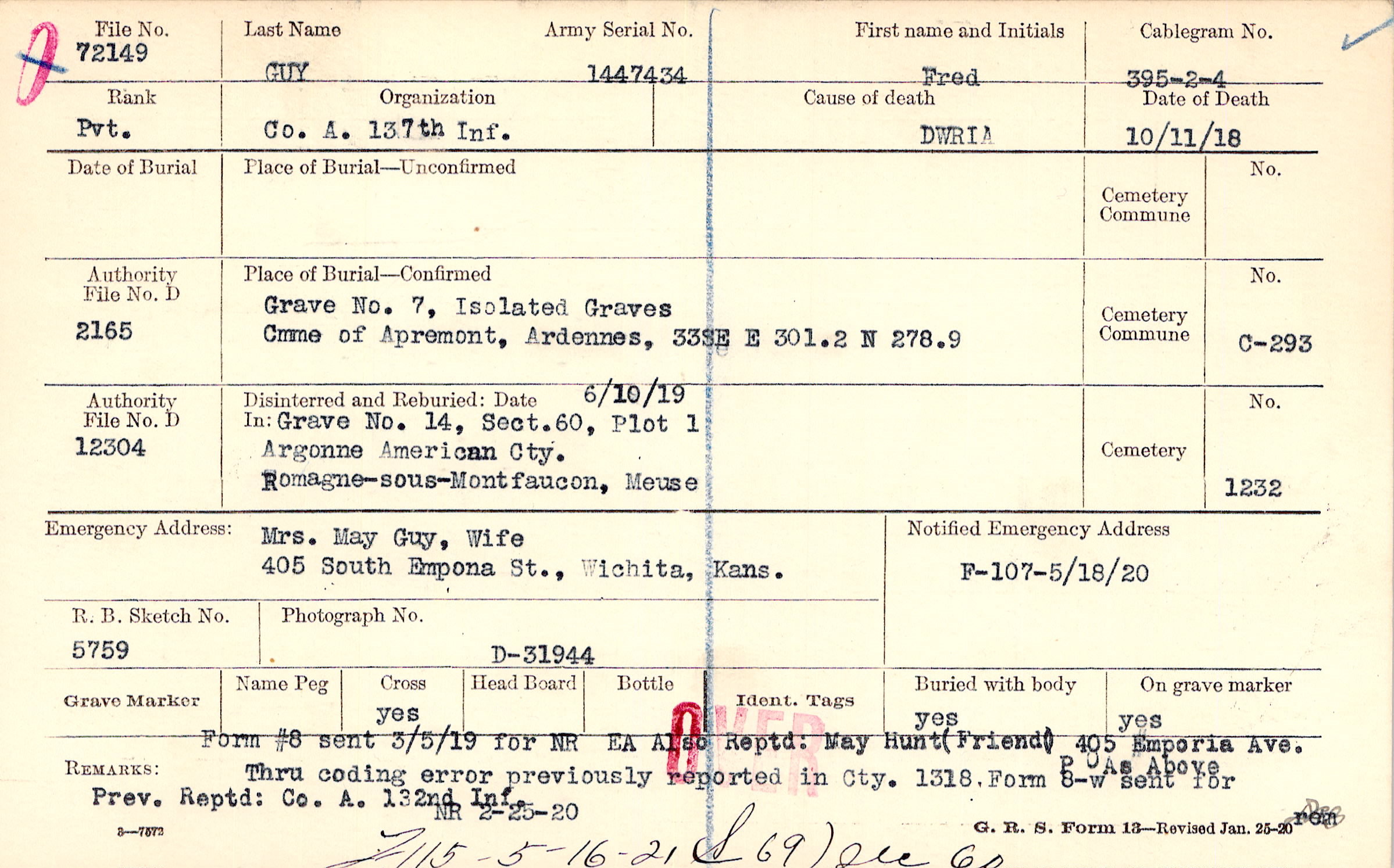 Mrs. May Guy, Wife, 405 South Empona St., Wichita, Kans.