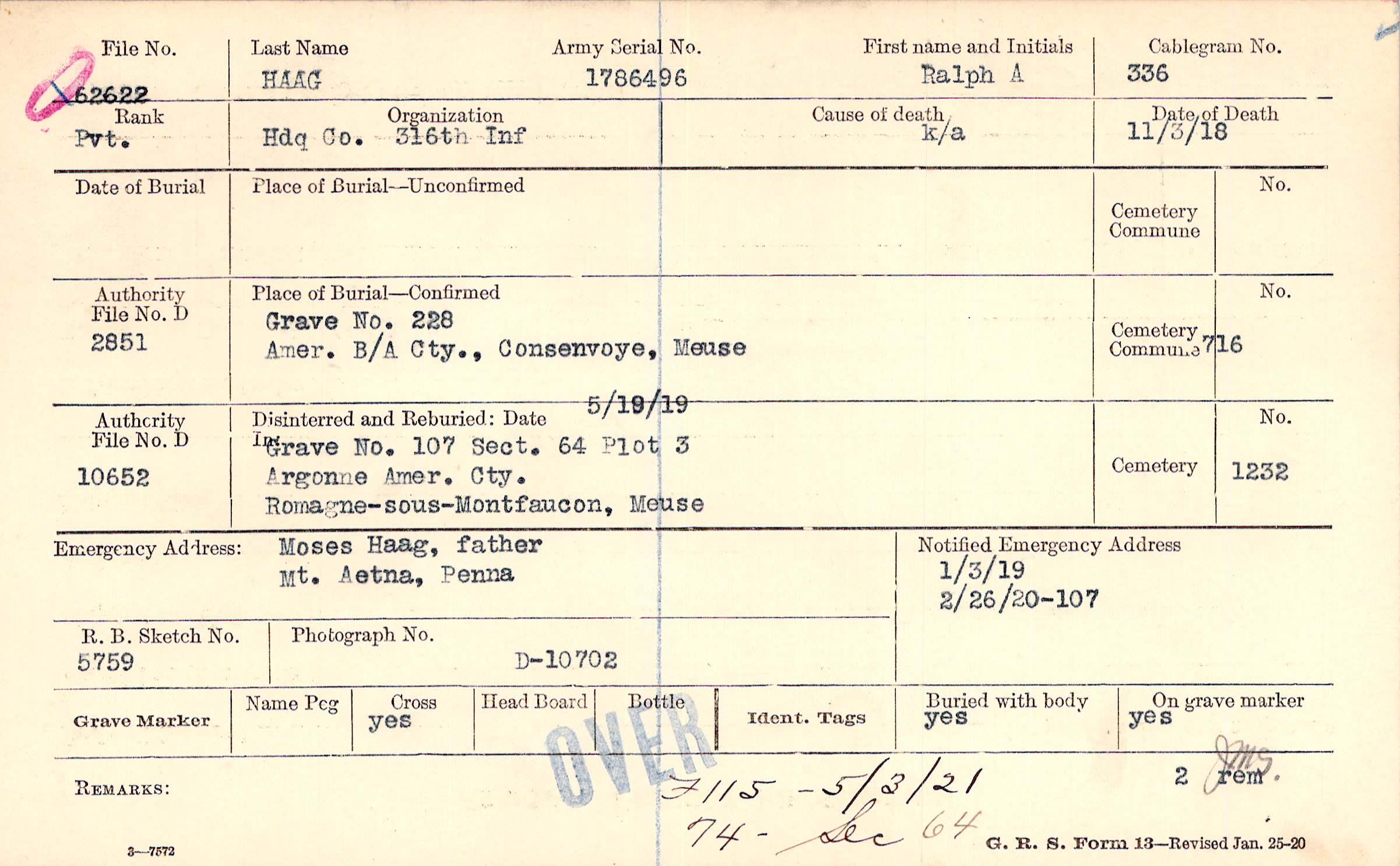 Grave 228, Amer. B/A Cty., Consenvoye, Meuse