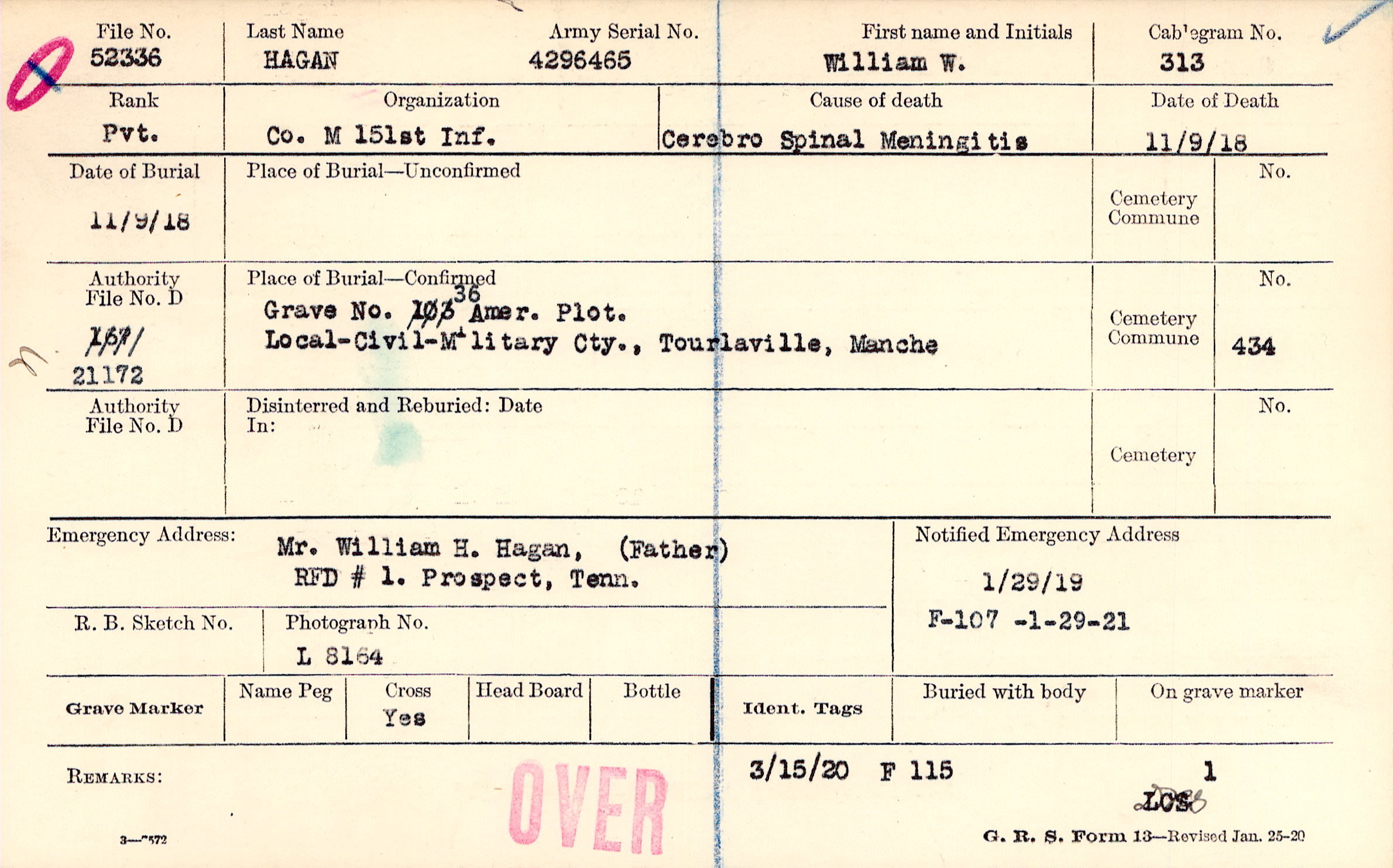 Mr. William H. Hagan, (Father), RFD # 1. Prospect, Tenn.
