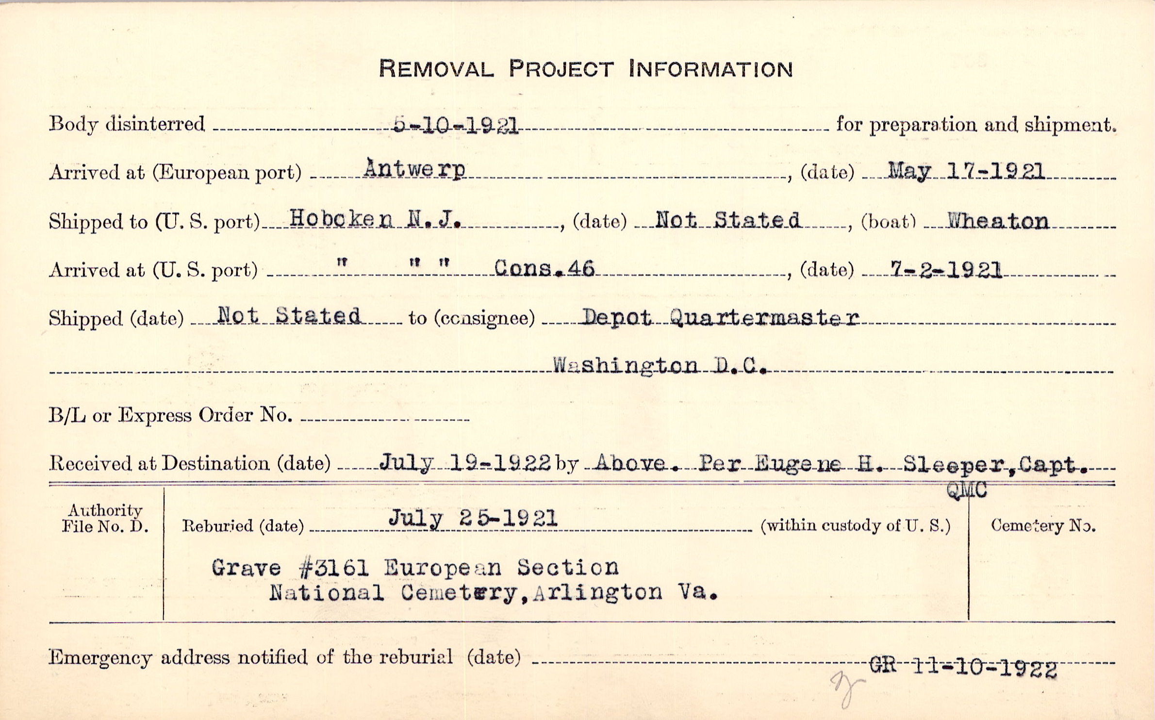 by Above. Per Eugene H. Sleeper, Capt. QMC